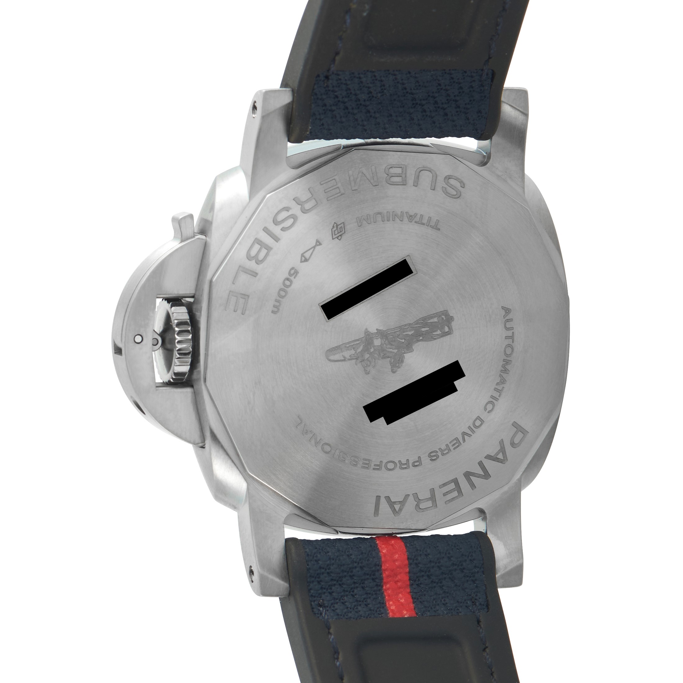 Issued exclusively through Panerai boutiques, this reference ties the Submersible line to the Luna Rossa sailing team partnership. It features a grade 5 titanium build and dual-time function, plus professional dive capability. The 42mm case carries a solid construction rated to 500 meters. The unidirectional bezel utilizes matte blue ceramic with a high-contrast diving scale. The deep blue dial carries Luna Rossa codes, with red accents across the GMT hand and small seconds hand. Inside runs the automatic P.900\/GMT caliber, providing independent hour hand adjustment and a 72-hour power reserve.This is a pre-owned Officine Panerai Submersible GMT Luna Rossa Titanium Watch PAM01507. It comes complete with papers and the manufacturer's box.