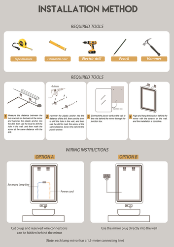 Wie kann man in einem beschlagenen Spiegel klar sehen? Unser dimmbarer LED-Badezimmerspiegel verfügt über einen Touch-Schalter für eine einfache Bedienung. Eingebaute Entfogging-Funktion, um den Spiegel klar zu halten. Echtzeit-Zeitanzeige ist bequem für die Zeitplanung. Unendlich dimmbares Design, um verschiedene Beleuchtungsanforderungen zu erfüllen. Kaufen Sie ihn und verbessern Sie Ihr Badezimmer.