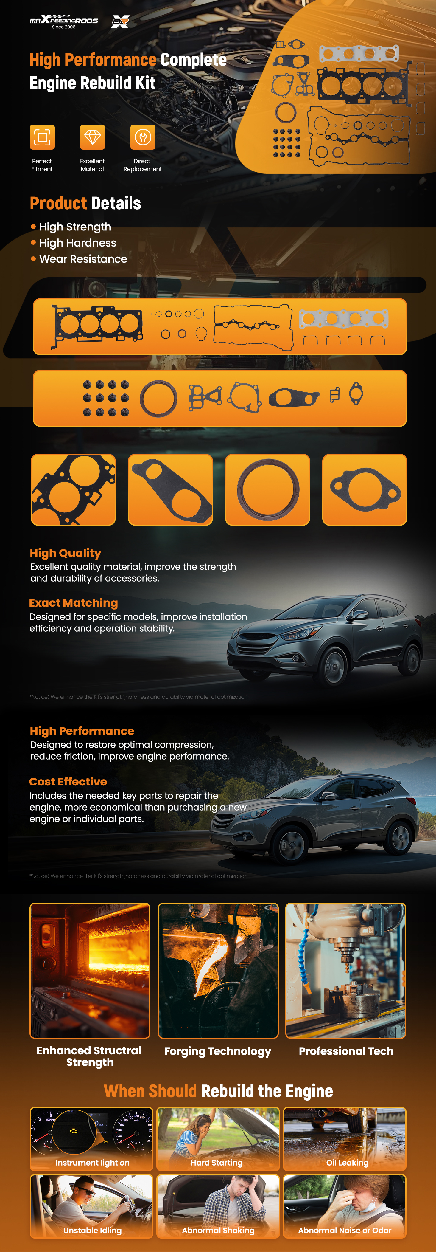 * Hi-performance aftermarket parts; no instruction included; professional installation is suggested.