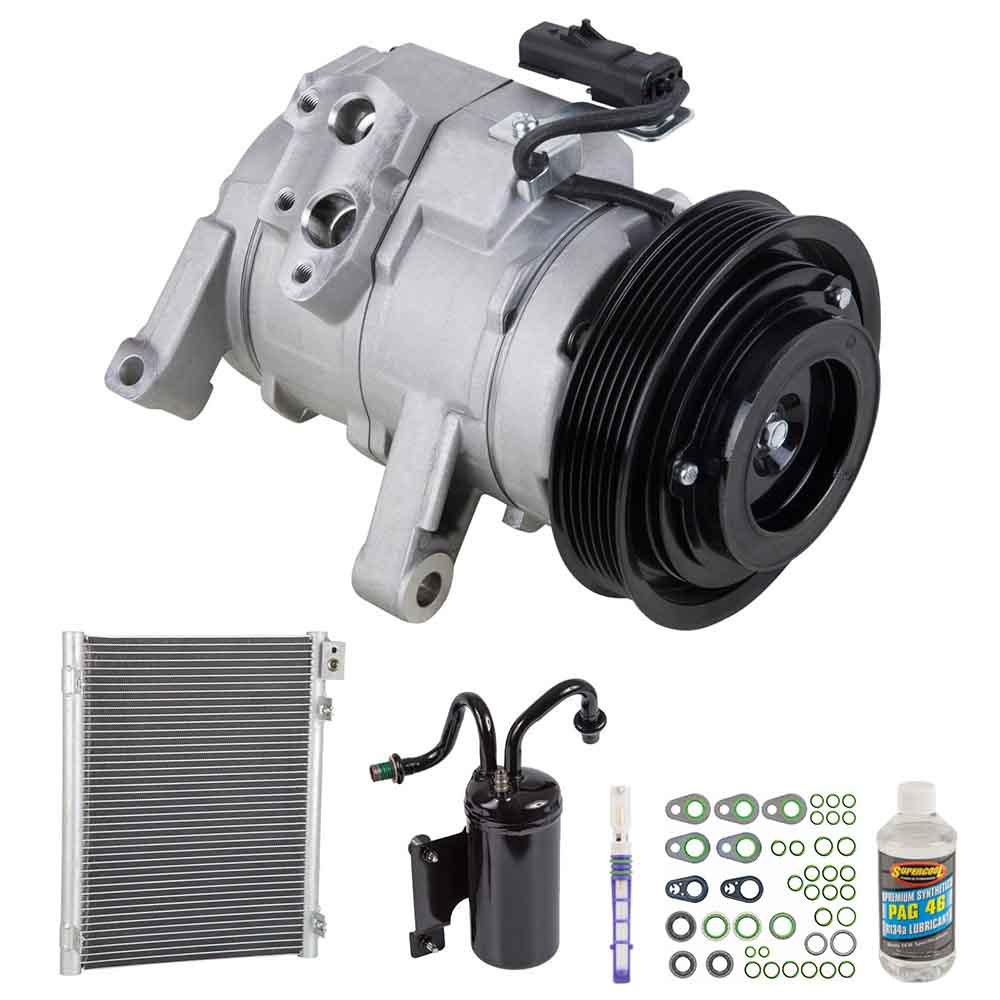 This 6 piece Complete AC Kit includes a brand new AC compressor, condenser, accumulator/drier, expansion device, a bottle of AC compressor oil and a pack of the correct o-rings for your system to prevent leaks. This kit is designed to include all of the right parts to make the repair process easier and save you money.