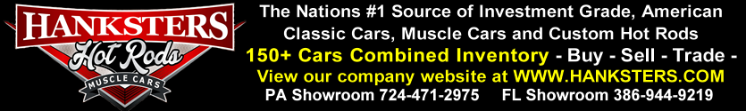 My name is Gary Hankinson AKA "Hankster." I've been building, restoring and selling Hot Rods, Muscle Cars, Classic Cars and Motorcycles for 30 years. I would like to personally thank you for visiting our web site, where every one of our cars have been personally selected and handpicked by our team. We do not do consignment and we own 100% of our cars so we don't have to check with the seller, we can make a deal on the spot. With over 30 years of knowledge and hands on experience, We only purchase quality cars, Period. We keep 75+ vehicles in each of our showrooms in Pa. & South Daytona Florida. Specializing in quality Muscle cars, Classic Cars, Hot rods, Street rods, Resto Mods, & Pro Touring Cars, we mostly purchase our cars from individual owners or private collections. We’re very thorough in our listings by showing you many photos and videos of many different views, interior, exterior and underside. We take great pride in being able to provide our customers with their dream cars at an affordable price. All of our vehicles are available for inspection prior to purchase or bidding. If you are looking for something specific and do not see it in our inventory, please let me know. I have built relationships with many collectors throughout the United States so if you have a specific car in mind, we can find it!