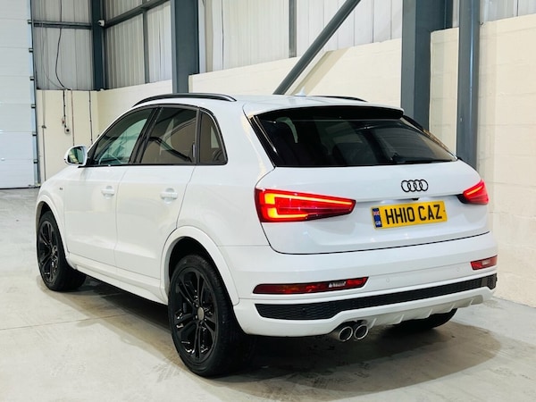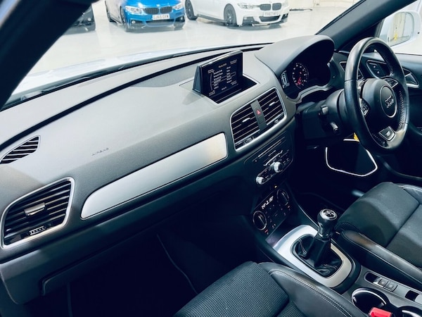 AUDI Q3 2.0 TDI S line Edition SUV 5dr Diesel Manual Euro 6 (s/s) (150 ps) Registration: HH10CAZ Year: 2018 (18) Mileage: 98,000 miles Fuel: Diesel Transmission: Manual Colour: Glacier White ULEZ Compliant A stylish and practical premium SUV offering strong performance, sporty S line styling, and excellent economy. This Audi Q3 2.0 TDI S line Edition produces 150 PS from its refined diesel engine, paired with a smooth 6-speed manual gearbox for an engaging yet efficient drive. Finished in Glacier White, this example benefits from an outstanding factory specification with over £4,000 of optional extras, including the Technology Package, Comfort & Sound Package, Black Styling Pack, and Heated Seats, making it a particularly well-equipped and desirable Q3. This well-presented vehicle has covered 98,000 miles and comes with Full Service History, Free HPI Certificate, 3 Months Warranty, and all original booklets and manuals. Optional Extras Audi Hill Hold Assist - £90 18" Alloy Wheels - 5-Arm Off-Road Design - £380 Black Styling Pack with Black Roof Rails - £395 Privacy Glass - £360 Comfort & Sound Package - £995 Heated Front Seats - £295 Technology Package - £995 Glacier White Paint - £550 Key Features 2.0 TDI diesel engine producing 150 PS 6-speed manual transmission S line Edition styling Technology Package Comfort & Sound Package Black Styling Pack Heated front seats 18" alloy wheels Satellite navigation system Bose sound system Bluetooth phone and media connectivity DAB digital radio Dual-zone automatic climate control Cruise control and speed limiter Front and rear parking sensors Sports seats with S line detailing ISOFIX child seat points Split-folding rear seats Additional Information Euro 6 diesel - ULEZ compliant Combined MPG: 55 mpg 98,000 miles with 6 Service invoices Sporty yet practical premium SUV Excellent balance of performance, comfort, and efficiency.Audi Hill Hold Assist, Technology Package, Heated Front Seats, Comfort and Sound Package, Glacier White, Privacy Glass, 18in Alloy Wheels - 5-Arm Off-Road Design, Black Styling Pack with Black Roof Rails, 18in Alloy Wheels - 5-Twin-Spoke Design Partly Polished, 4-Way Electric Lumbar Support for Front Seats, 6.5in Colour Display Screen, 8 Passive Speakers, AMI - Audi Music Interface, Aluminium Roof Rails, Aluminium Window Trims, Anti Theft Locking Wheel Bolts, Anti-Theft Alarm, Audi Drive Select, Audi Parking System Plus, Auto-Dimming Rear-View Mirror, Bluetooth Interface, Body Coloured Door Mirrors, Chrome-Plated Trims for Exhaust Tailpipes, Cloth Headlining in Black, Concert Radio, Cruise Control, DAB Digital Radio, Door Mirrors - Heated-Electrically Adjustable-Folding, Door Sill Trims with S Line Logo, Driver - Front Passenger - Front Side and Head Airbag System, Drivers Information System - DIS - 3.5in - Monochrome Display, Dual-Zone Electronic Climate Control, Dynamic Suspension, ESC - Electronic Stabilisation Control inc ABS - ASR and EDL, Electric Windows - Front, Electromechanical Parking Brake, Electromechanical Power Steering - Speed-Sensitive Provides a Precise Steering Feel at High Speeds and Excellent Assistance when Parking., Extendable Luggage Compartment Cover, First Aid Kit and Warning Triangle, Front Centre Armrest, Front Lip and Rear Diffuser in Full Paint Finish - Diffuser Insert Painted Platinum Grey, Front and Rear Floor Mats, Front and Rear Fog Lights, Gear Knob - Perforated Leather, ISOFIX Child Seat Mounting and Top Tether, Inlays - Matt Brushed Aluminium, LED Headlights with LED Rear Lights and Dynamic Rear Indicators, Light and Rain Sensor, Manual Seat Adjustment, Power Operated Tailgate, Remote Central Locking, Reversible Luggage Compartment Floor, S Line Badges on Front Wings, S Line Body Styling, S Line Radiator Grille with Horizontal Struts in High-Gloss Black, Satellite Navigation System - SD Card Based, Seat Belt Monitoring, Secondary Collision Brake Assist, Space Saver Spare Wheel, Split-Folding Rear Seats, Stainless Steel Loading Sill Protector, Steering Wheel - 3-Spoke Leather-MultiFunction-Q-Design, Steering Wheel - Height and Reach Adjustable, Tool Kit and Car Jack, Towbar Preparation, Tyre Pressure Loss Indicator, Voice Control System, Windscreen with Acoustic Glazing