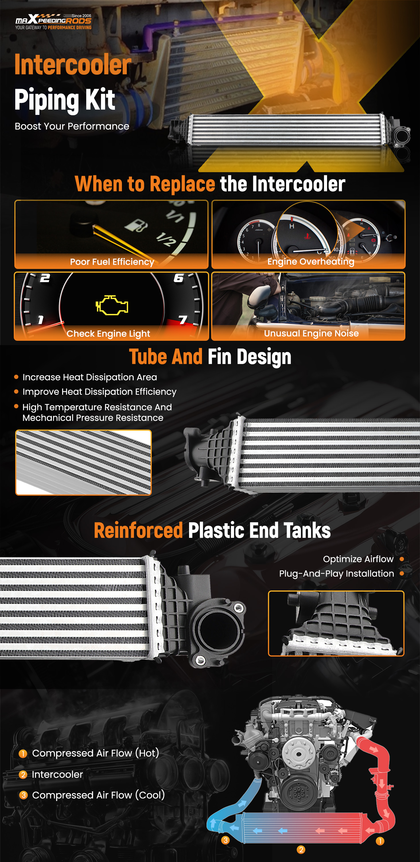 1. Helps to reduce the intake air temperature of the engine.