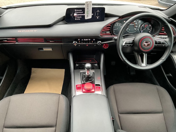 This 2024 Mazda3 e-SKYACTIV-X Exclusive-Line presents an exceptional opportunity with its remarkably low mileage of just 6245 miles. This Euro 6 compliant 2.0L petrol engine vehicle, finished in the Exclusive Line trim, offers a refined driving experience. It comes equipped with advanced features such as adaptive LED headlights that are dusk sensing and automatically switch on, ensuring optimal visibility. Inside, you'll appreciate the convenience of Apple CarPlay and Android Auto integration, keeping you connected on the go, while the colour active driving display provides essential information at a glance. For added comfort and enjoyment, this Mazda3 also features a power tilt and slide sunroof.The performance of this Mazda3 is further enhanced by its brisk acceleration, reaching 0-62mph in a swift 8.1 seconds. This capability, combined with its low CO2 emissions, positions it favourably against other vehicles in its class. Furthermore, the generous boot space offers practicality for everyday needs and longer journeys. These highlights demonstrate the thoughtful engineering and desirable features that make this Mazda3 a compelling choice.