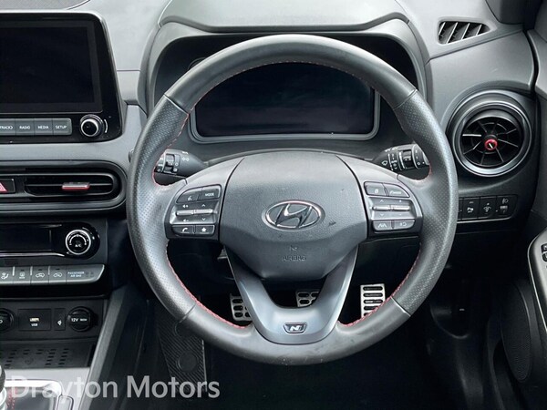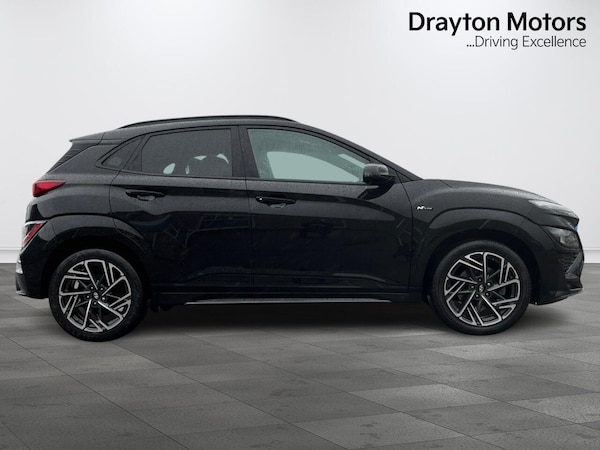 Here we have a fantastic opportunity to purchase our lovely Hyundai Kona Hatchback 1.0 TGDi 48V MHEV N Line 5dr, finished in the Phantom Black. Coming to us with only two previous owners, well kept example with Hyundai service history this fantastic car is unlikely to be around with us for very long at all. Benefitting from being health checked with ourselves during its preparation; your running costs over the next 12 months should be kept to an absolute minimum as you also have no need for an MOT until Feb 2027! With an array of standard spec which includes, 10.25-inch touchscreen with navigation, Apple CarPlay/Android Auto, Krell premium audio system (8 speakers) & much more, you will be sure to truly love each and every journey you take in it!With the option to extend your warranty by up to 3 years with AA Breakdown Cover, give us a call today to discuss how we can help you explore the possibility of purchasing it either in person or over the phone with a range of collection and delivery options too! We offer servicing packages, personalised walkaround videos and our helpful sales executives can answer any questions you have on this vehicle before you make your purchase so why wait? Give us a call today to secure your new car from just £199! As well as offering delivery; here at Drayton Motors Grantham, it couldn’t be easier to find us! We are located just minutes off the A1 and we have a local train station less than a 5 minute drive from the dealership, we are always happy to collect our guests when you arrive, speak to our team for more info!