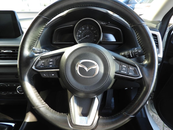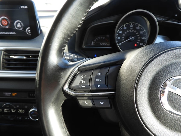 This 2019 Mazda3 SKYACTIV-G Sport Black is a well maintained example with a low insurance group. It features a 2.0 litre petrol engine and meets Euro 6 emissions standards. Inside, you'll find a premium Bose Centrepoint Surround sound system with nine speakers, complemented by an AM-FM-DAB radio and a single CD player with MP3 compatibility. Comfort is enhanced with heated front seats offering three stage settings and a heated steering wheel. Access is convenient thanks to smart keyless entry, and parking is made easier with a reversing camera.This Mazda3 offers impressive performance, accelerating from 0 to 62mph in just 8.9 seconds. Its fuel economy is a notable highlight, achieving up to 55 miles per gallon, which is better than many similar vehicles. Furthermore, the large boot space provides ample room for luggage or shopping, making it a practical choice. The combination of these features, including its efficient engine and comfortable interior, positions this Mazda3 as a superior option in its class.