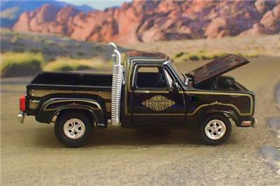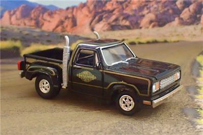 RETIRED MODEL. 78 DODGE MIDNIGHT EXPRESS PICK-UP TRUCK DIECAST MODEL BY JOHNNY LIGHTNING ADULT COLLECTIBLES. DODGE RELEASED THE MIGHTNIGHT EXPRESS TRUCK IN 1978 IT WAS ONE OF THE MOST UNIQUE DODGE TRUCKS THAT HAD EVER BEEN PRODUCED. THE MIDNIGHT EXPRESS WAS NOT ONLY A REAL LOOKER BUT THESE TRUCKS WERE ALSO REAL PREFORMERS AS WELL. IN 1978 THE DODGE MIDNIGHT EXPRESS WAS THE FASTEST AMERICAN MADE VEHICLE FROM 0-100 MPH AS TESTED BY CAR AND DRIVER. THIS MODEL IS FINISHED IN BLACK WITH A BLACK INTERIOR. FEATURING AN OPENING HOOD, INTRICATE DETAIL FROM ONE END TO THE OTHER INCLUDING FACTORY MIDNIGHTR EXPRESS TRUCK GRAPHICS. ALL RIDING ON REAL RUBBER TIRES MOUNTED ON CHROME MAG WHEELS. A TRUE WORK OF MINIATURE AUTOMOTIVE ART.