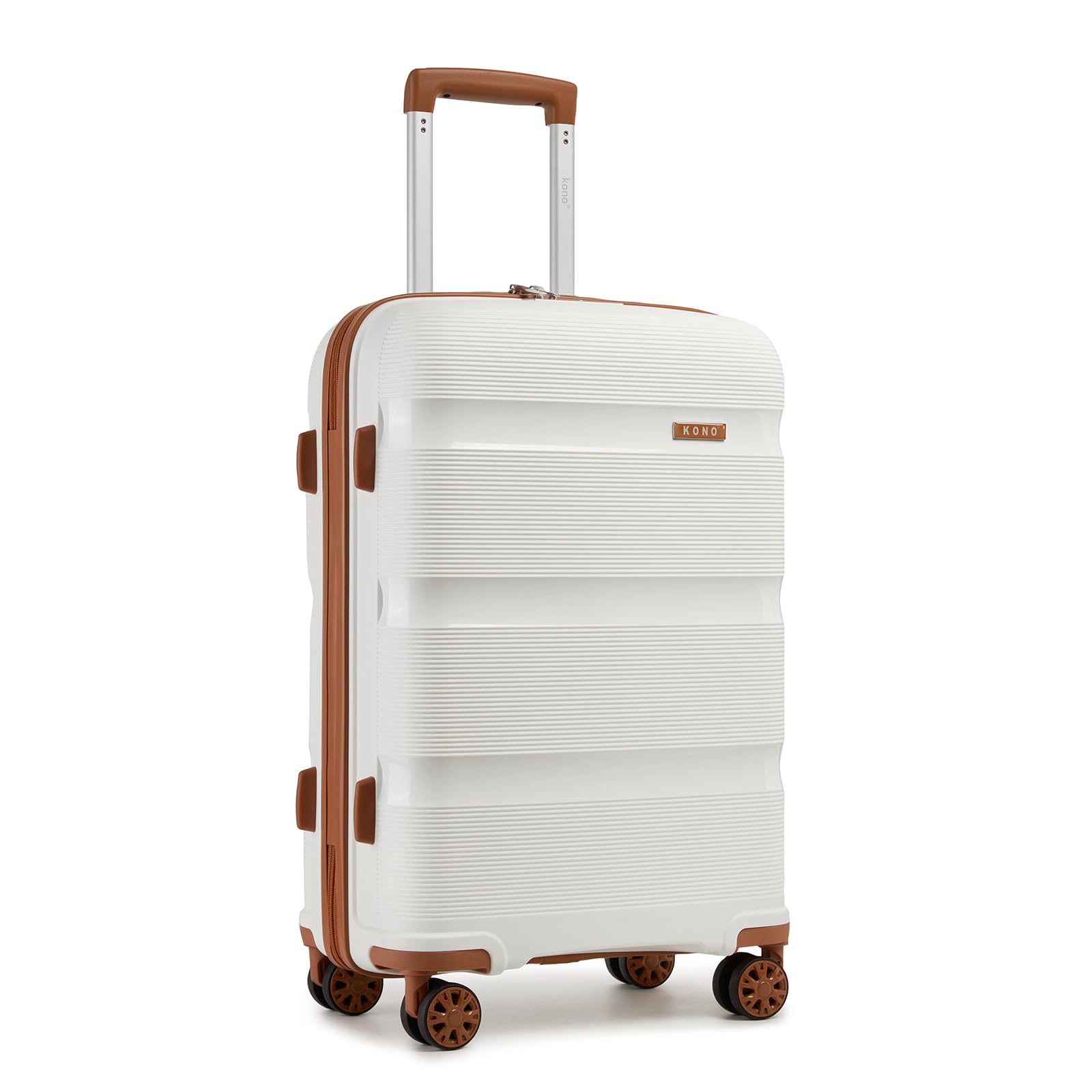 Kono Carry On Luggage 24 Inch Checked-Medium Hard Shell Travel Trolley 4 Spinner Wheels Lightweight Polypropylene Suitcase with TSA Lock, Cream White
