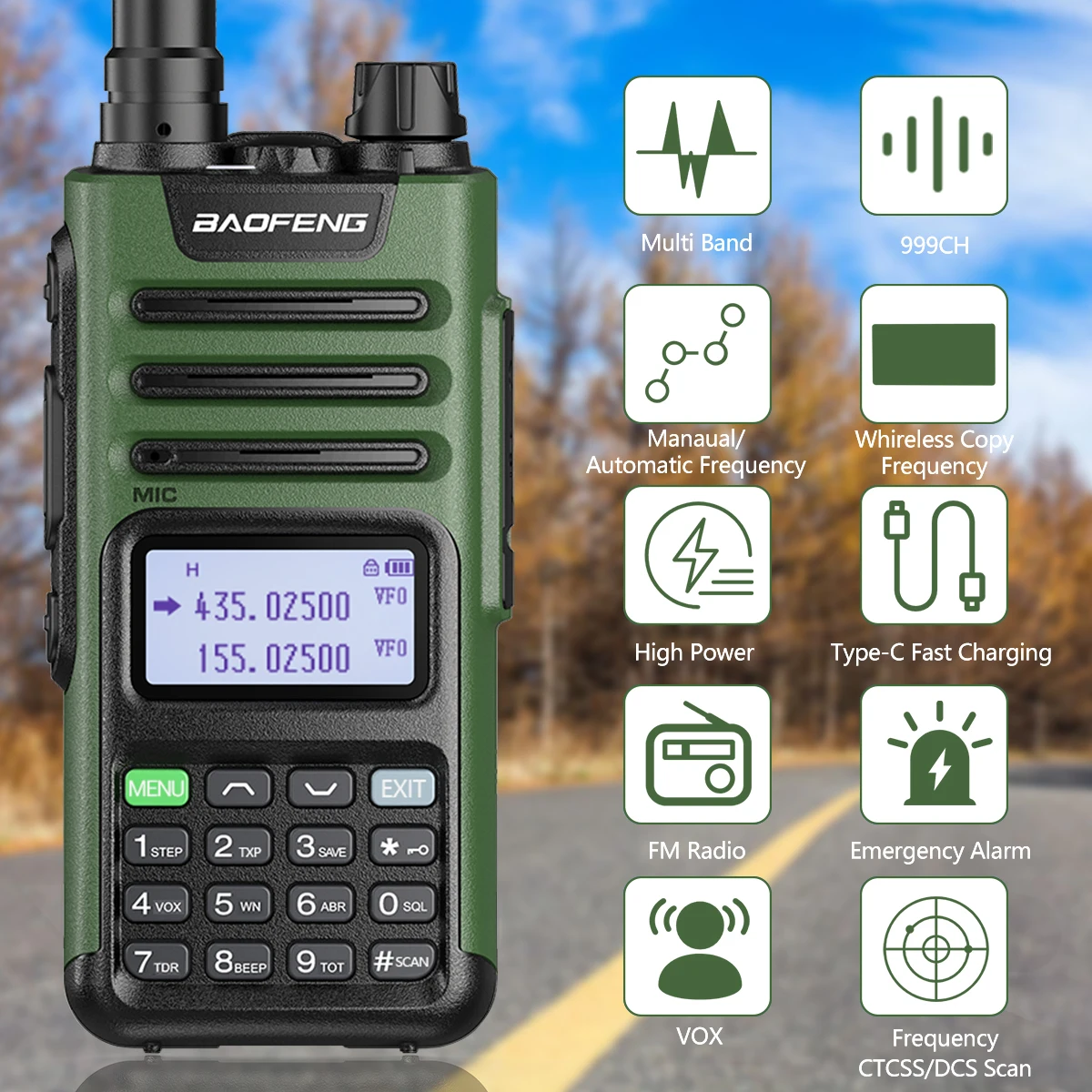 - Supports dual RX/TX across multiple frequency bands: 136-174MHz, 220-260MHz, and 400-480MHz for versatile use. It includes 999 programmable memory channels for custom setups.