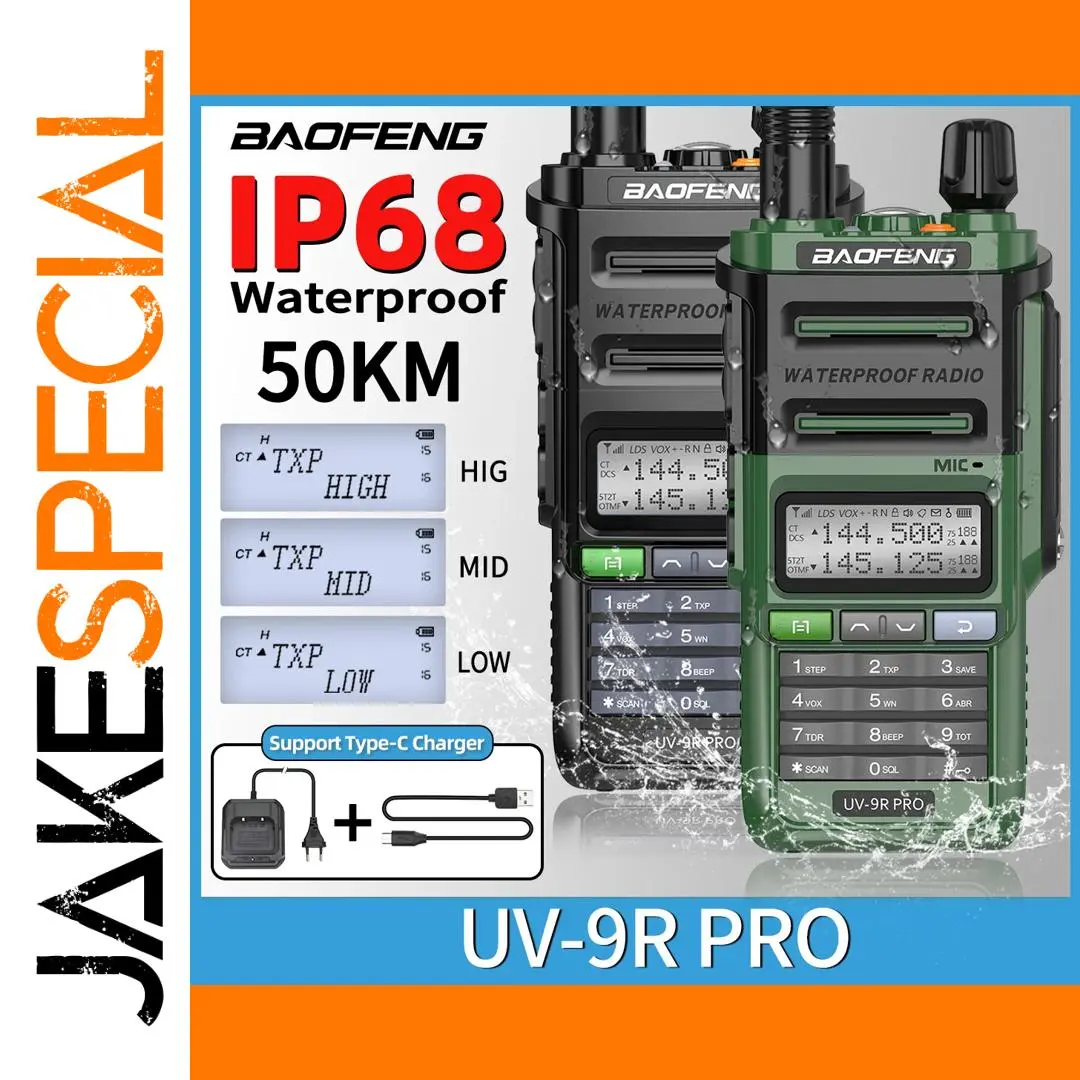 👀 Experience reliable long-range communication with this rugged Baofeng UV-9R Pro V2 walkie-talkie, featuring IP68 waterproof and dustproof protection, 5W-10W output power, and support for up to 128 programmable channels across dual frequency ranges of 136-174 MHz and 400-520 MHz. Its compact design measures 173 x 100 x 95 mm and includes a high-capacity lithium-ion battery, LED flashlight, programmable keypad, and a display showing channel number and frequency for easy control. Features like cross-band transmission, VOX, DTMF emergency alarm, ANI code, programmable via PC, and emergency SOS ensure safety and versatility. Suitable for demanding environments, this device combines durability with advanced functionality.