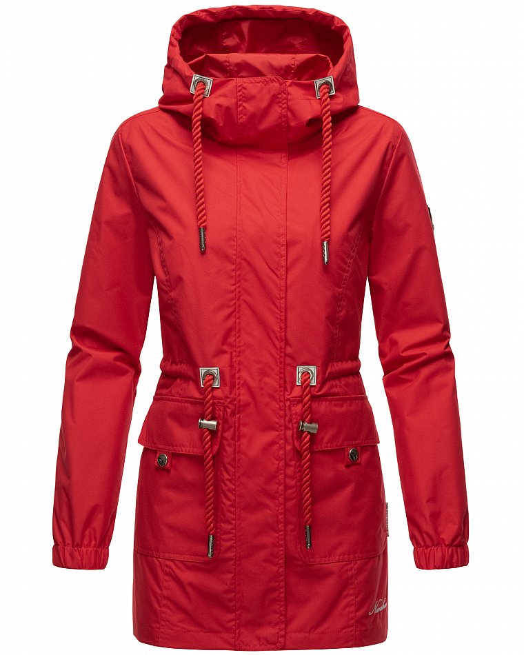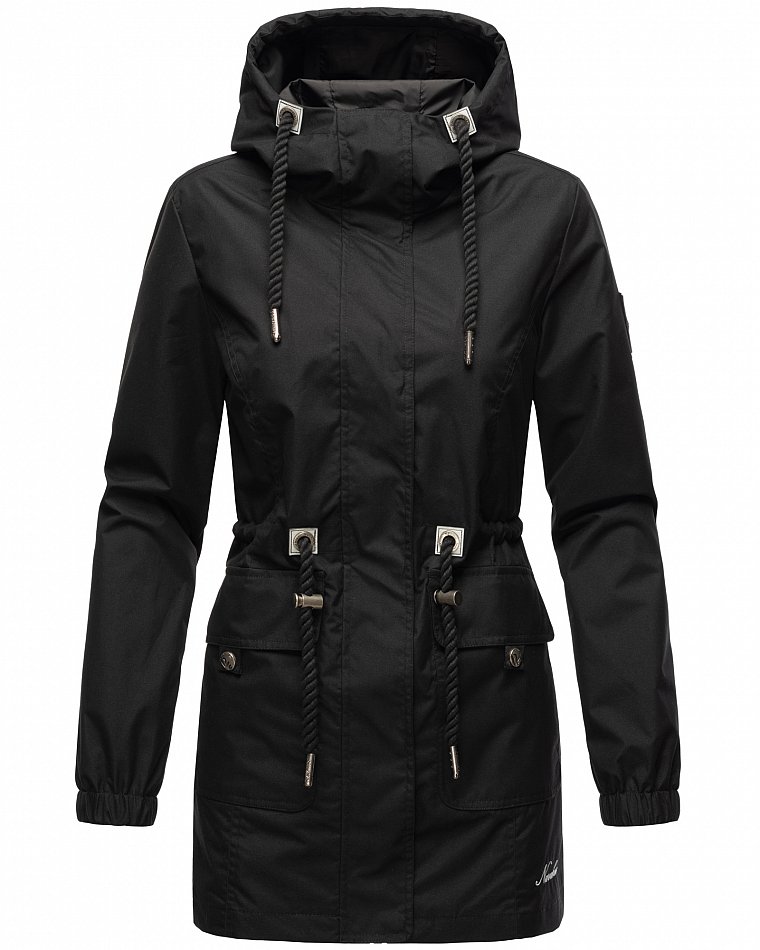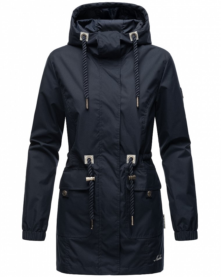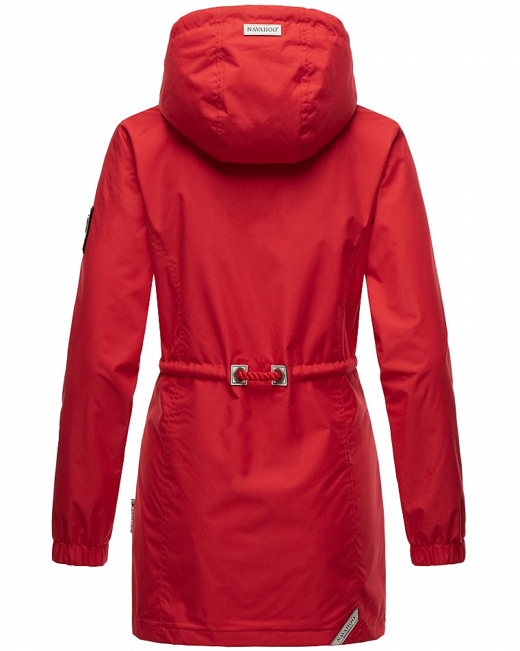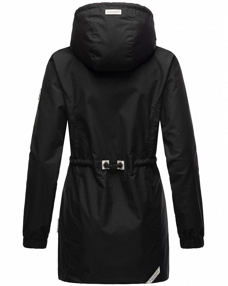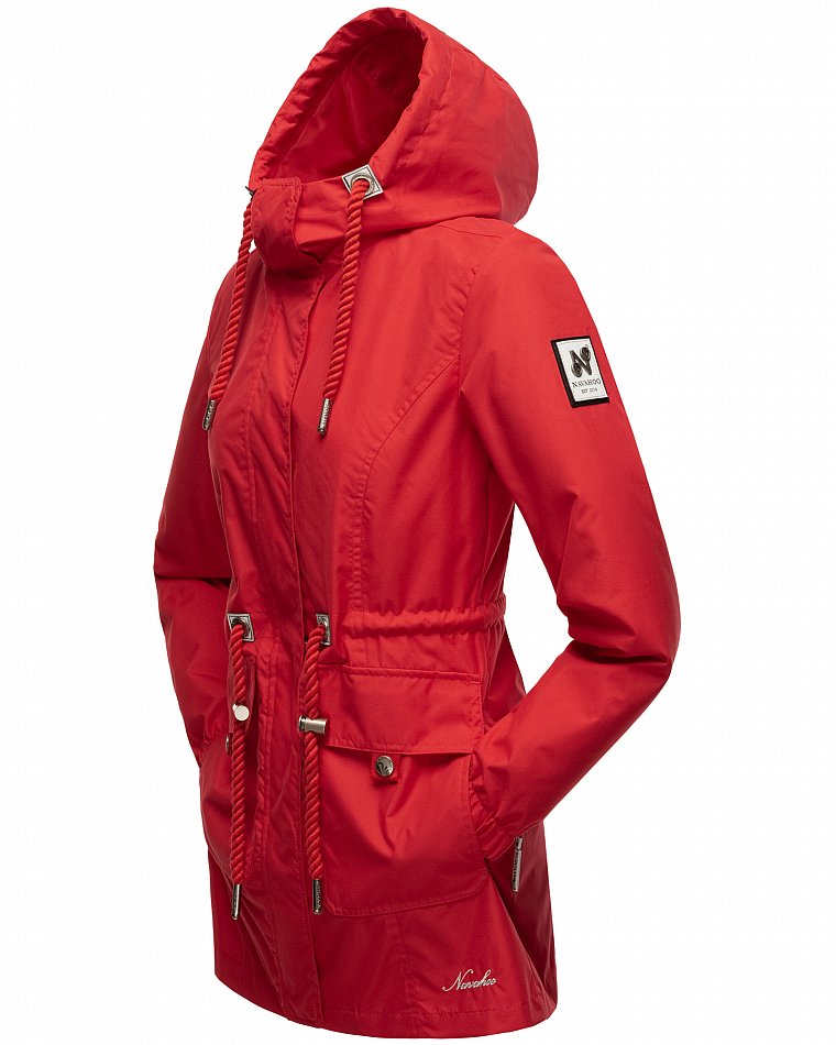 Parka mi-saison ultralégère pour femme fabriquée à partir de matériaux recyclés. L'anorak durable est entièrement fabriqué à partir de matériaux recyclés. Le style léger et élégant est parfait pour la mi-saison, mais convient également pour les fraîches journées d'été. Les larges cordons sur la capuche et le cordon de serrage à la taille, qui rappellent de petites cordes, attirent le regard et ont une finition métallique. Les applications sur la ceinture et les œillets avec le logo Navahoo en relief attirent également le regard. Les tirettes de fermeture éclair Navahoo et les boutons-pression avec gaufrage Navahoo complètent le design. Le look subtil du manteau de transition convient à de nombreux styles et combinaisons. La doublure lisse et soyeuse est ornée de détails contrastés.