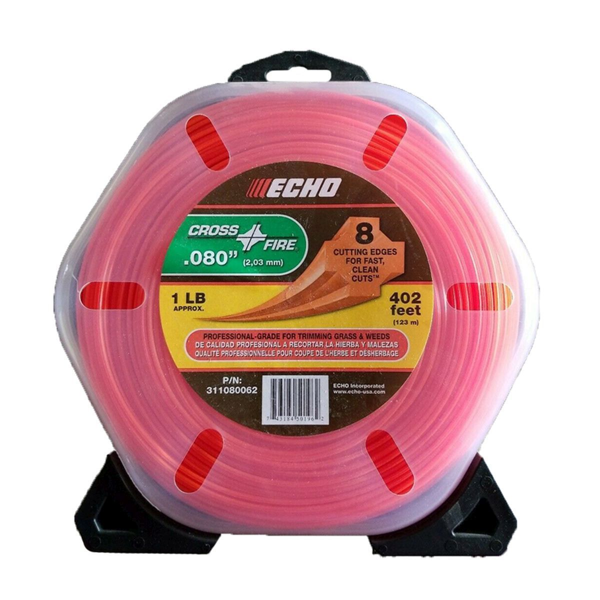Includes (1) 311080062 Trimmer Line. Cross-Fire 1 Lb. Donut .080" (dia.) Trimmer Line. Plus-shape design with eight cutting edges increases cutting surfaces for heavy-duty conditions. Increased efficiency in cutting time over standard trimmer lines. Superior durability against hard surfaces like rocks and fence lines.