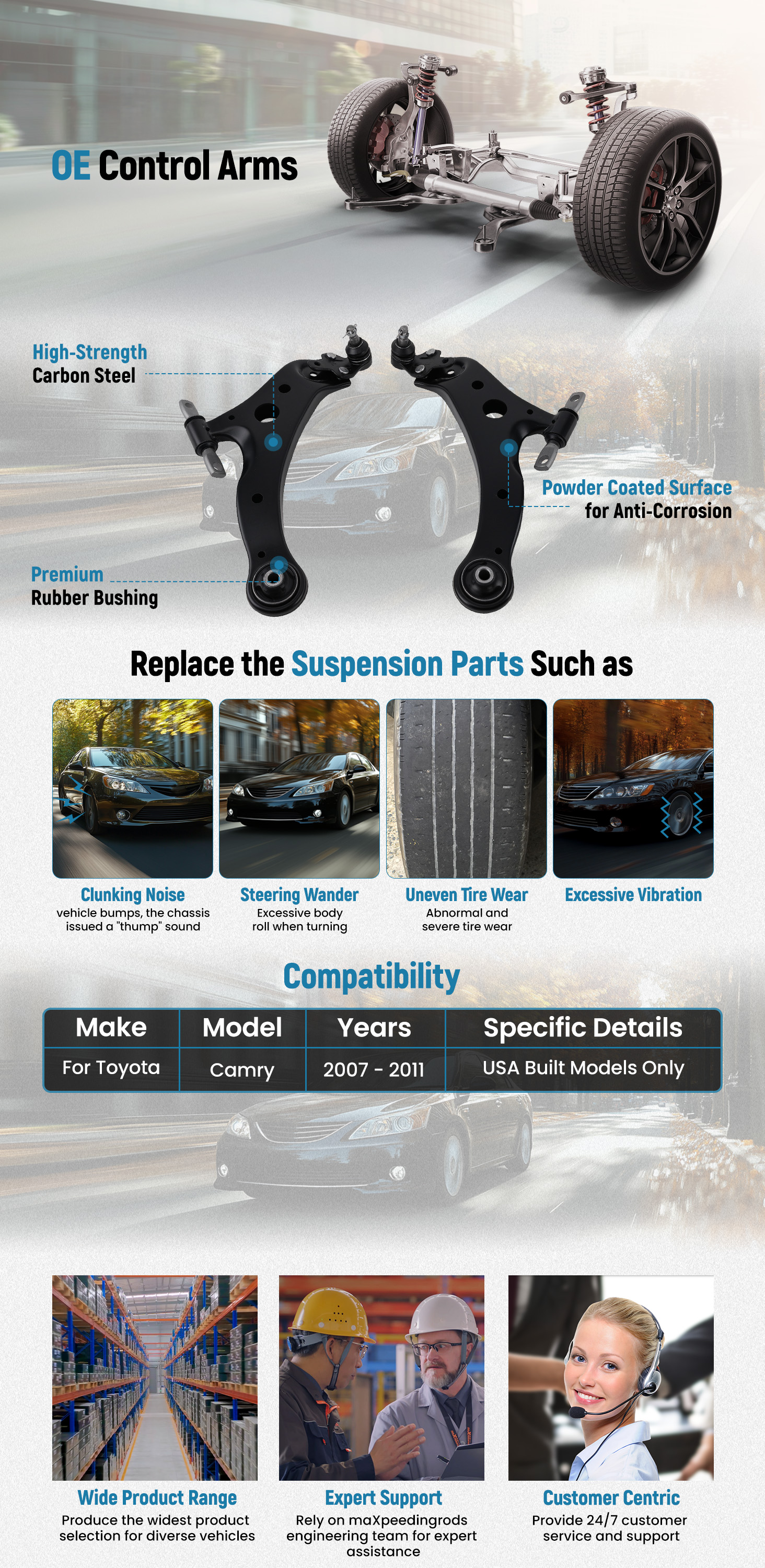 - The control arms are manufactured using advanced processes and premium coatings to maximize their durability and corrosion resistance