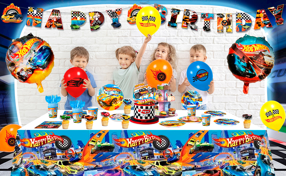 Hot Car Birthday Party Supplies, 114pcs Cars Party Decorations & Tableware Set