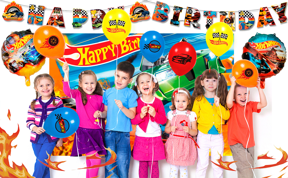 The cars backdrop is printed with patterns such as leaping racing cars, race tracks, and flames, the huge patterns and strong color contrast on the racing backdrop can bring a huge visual shock to the guests entering the cars birthday party.
