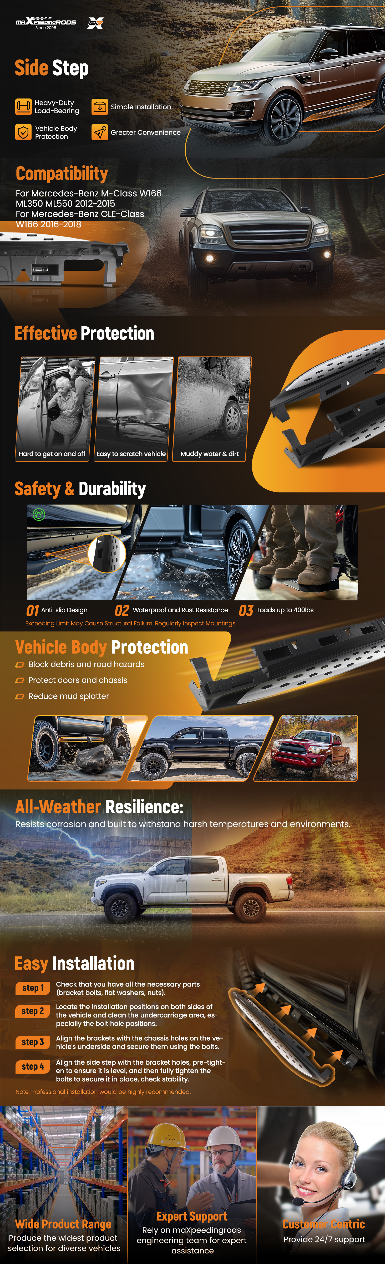 No more climbing struggles! Designed for effortless access, especially for kids, elderly passengers, or lifted trucks. Adds an extra layer of side protection against road debris and minor impacts.
