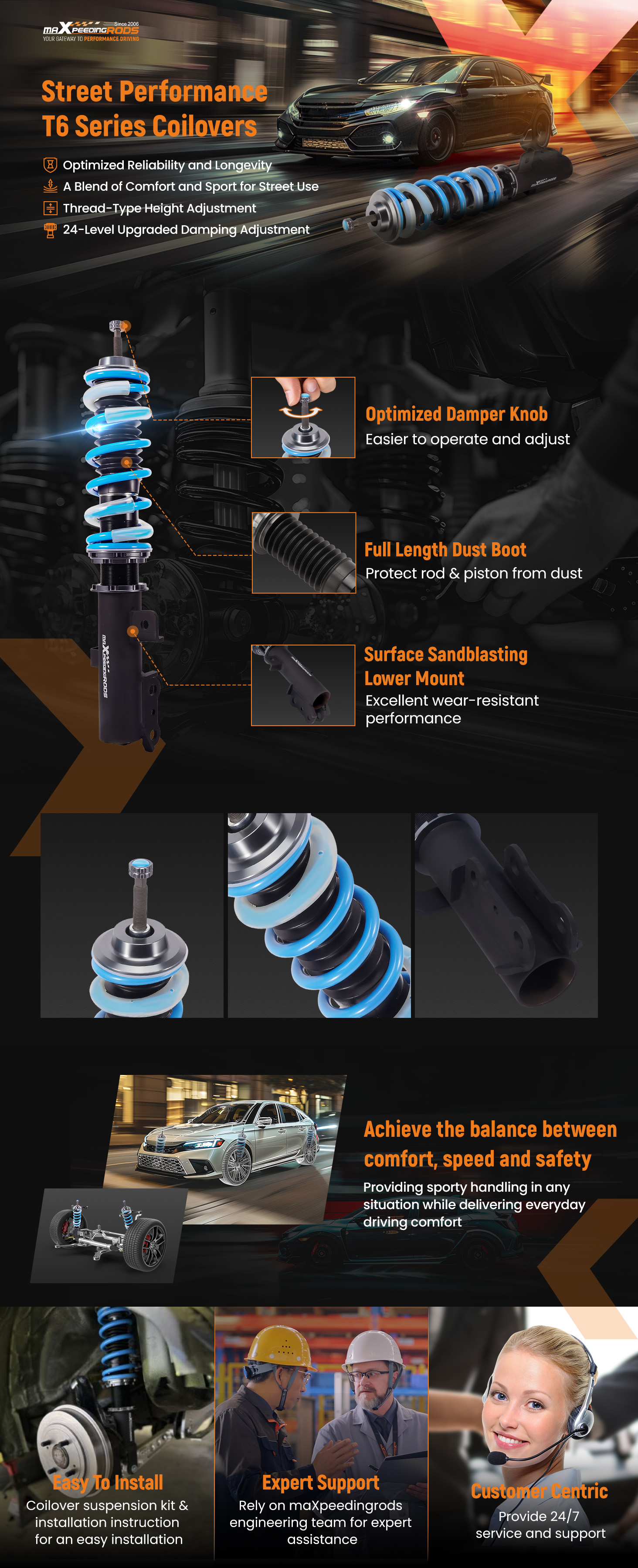 MaXpeedingrods T6 Coilovers Adjustable Lowering Coils For KIA Soul 2009-2013