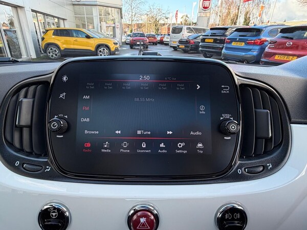 Discover this 2024 Fiat 500 Top, a stylish and efficient city car ready for its next adventure. This Euro 6 compliant model boasts a nimble 1.0L petrol engine, offering an impressive fuel economy of up to 61 miles per gallon. Inside, you'll find a 7in HD touchscreen radio complete with Bluetooth, USB connectivity, and DAB digital radio, ensuring your journeys are always accompanied by your favourite tunes. Stay comfortable with automatic climate control, and enjoy the open air through the fixed glass roof, which adds a touch of elegance and a sense of spaciousness.This Fiat 500 Top also features seamless smartphone integration with Apple CarPlay and Android Auto, keeping you connected on the go. Parking is made easier thanks to the rear parking sensors, providing added confidence in tight spaces. The low CO2 emissions highlight how this vehicle is a more environmentally conscious choice compared to similar cars. With its blend of modern technology, practical features, and excellent fuel efficiency, this Fiat 500 is an excellent option for navigating urban landscapes with ease and style.