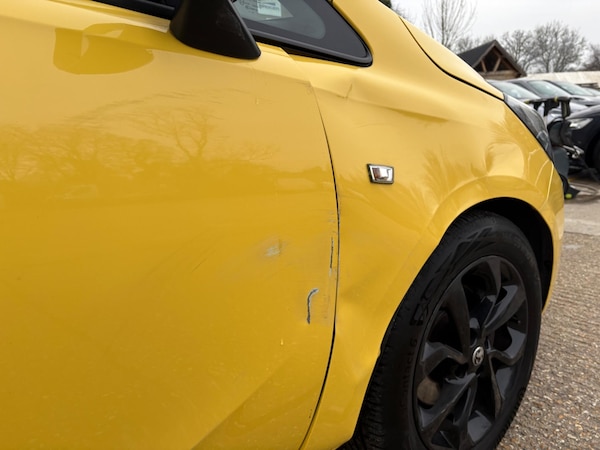 Superb value stand out from the crowd yellow Vauxhall Corsa 1.0 Turbo 3dr. This is a one owner car that has full service history with 9 service stamps. Very clean and tidy inside and out but It has been categorised as a Cat N which means not structural but due to its low value it is not economically repaired. But as per the photos the damage is quite minor and this reflects the price. Drives really well and is supplied with 2 keys.
