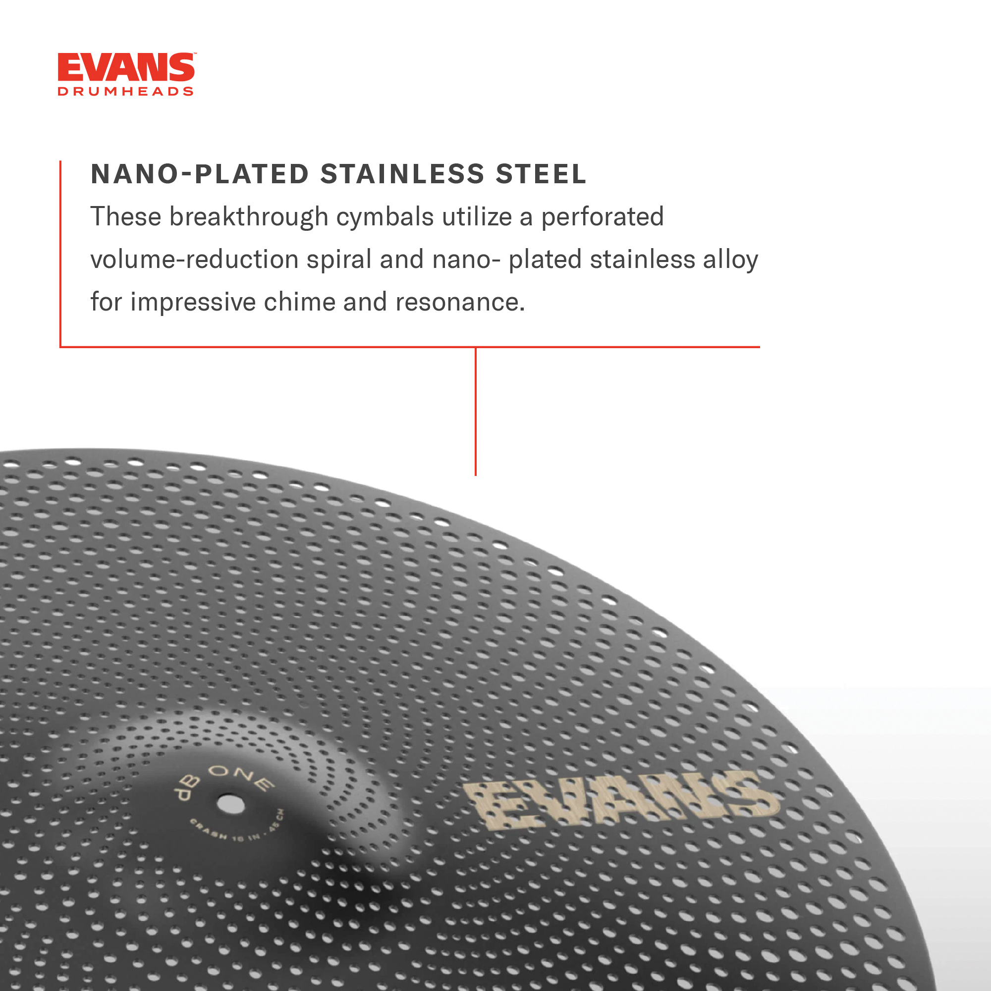 • EVANS dB One Cymbals are manufactured in China utilizing a nano-plated stainless steel alloy.