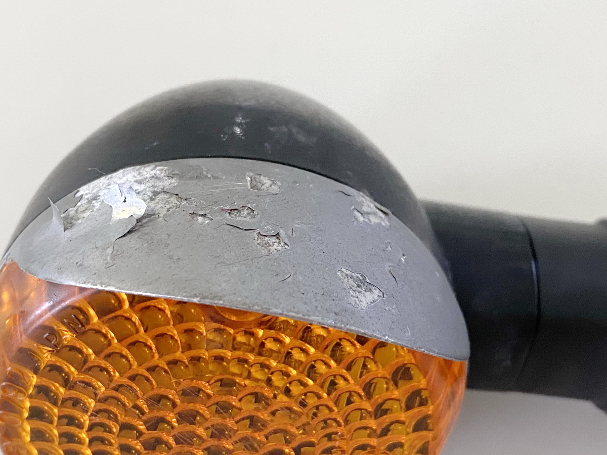 Descrizione: Indicatore mostrato - posteriore sinistro, dal modello/prima immatricolazione nel 2000, chilometraggio 43776 km, aloni vari - difetti di verniciatura, difetti superficiali più accentuati (distacchi) sul pannello di copertura