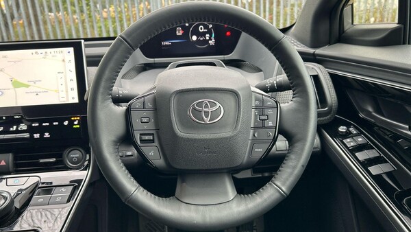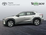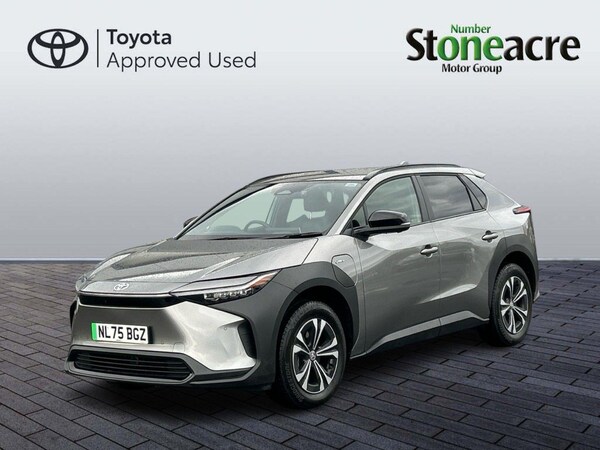 This 2025 Toyota bZ4X Motion is a pristine example, having had only one owner from new and benefiting from Toyota manufacturer approval. This all electric SUV offers a substantial battery maximum range of 313 miles, making it ideal for both daily commutes and longer journeys. Charging at home with a 7kW charger takes approximately 9 hours and 10 minutes for a full charge, while rapid public charging can take you from empty to 80% in just 34 minutes. The Motion trim level comes equipped with a suite of advanced features designed for convenience and safety, including rear parking sensors with automatic braking, dual zone automatic air conditioning, blind spot monitor, Bluetooth connectivity, and a 360 panoramic view monitor for effortless parking.The impressive 313 mile range truly sets this Toyota bZ4X apart, offering drivers greater freedom and fewer stops. The inclusion of the Blind Spot Monitor and 360 Panoramic View Monitor provides enhanced awareness and confidence when navigating busy roads and tight parking spaces. Furthermore, the automatic object and car braking system integrated with the rear parking sensors adds an extra layer of safety. This electric vehicle combines cutting edge technology with Toyota's renowned reliability, ensuring a smooth, efficient, and enjoyable driving experience.