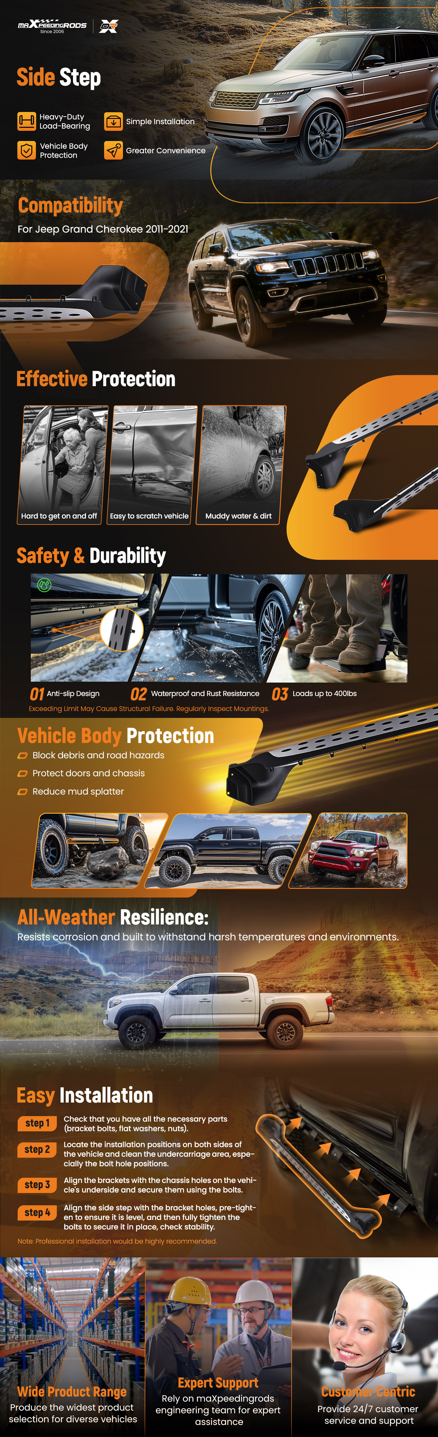 No more climbing struggles! Designed for effortless access, especially for kids, elderly passengers, or lifted trucks. Adds an extra layer of side protection against road debris and minor impacts.