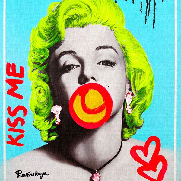 Artist: Nastya Rovenskaya. Medium: Mixed Media on Canvas. Title: Bubble Gum. Size: 20" x 16". Signature: Hand signed. Certificate of Authenticity: Is included. Reference#: 26324.