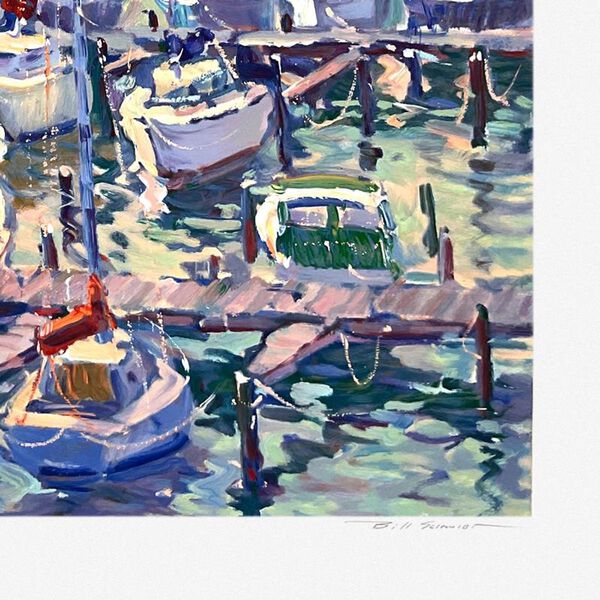 Annapolis Sunset is a limited edition printer's proof serigraph on paper by Bill Schmidt, numbered and hand signed by the artist. Includes Letter of Authenticity. Measures approx. 27.5" x 33" (border), 22" x 28" (image). Reference#: 93548.