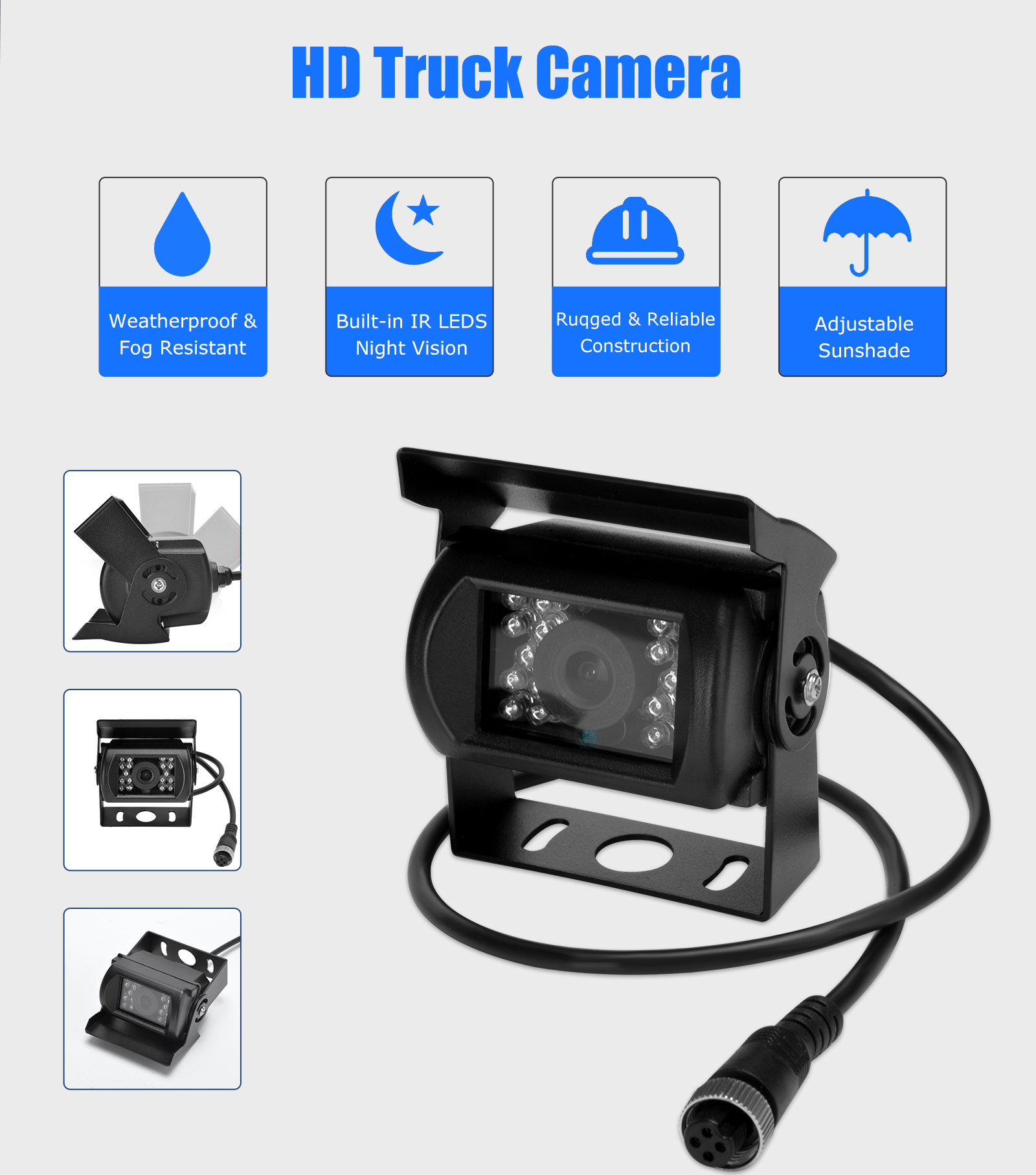 Waterproof Cameras with 18 Infrared Lights: Waterproof IP68 cameras with infrared lights make your driving in the dark safe and offer you the best night vision. With high/low temperature resistance, waterproof IP68, works perfectly in any extreme weather.