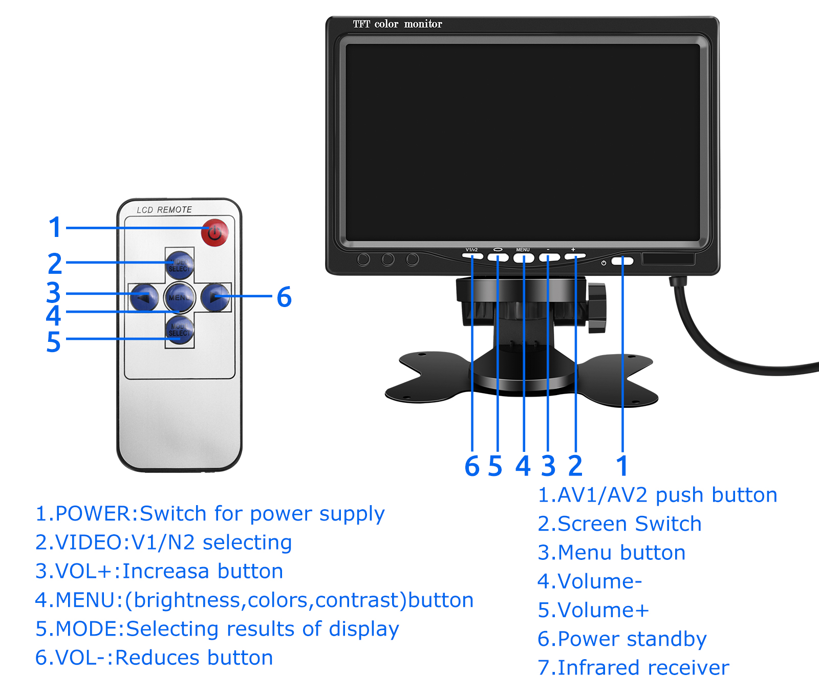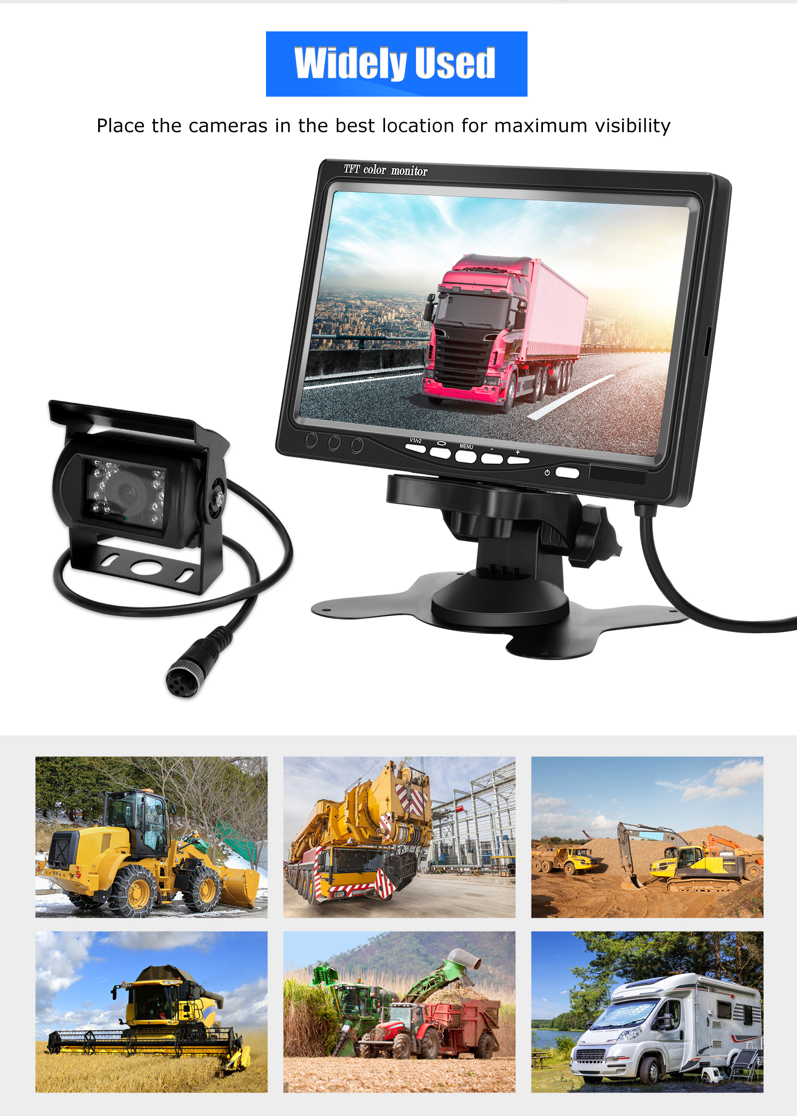 7 inch TFT LCD digital color monitor: This is a 7 inch wired rear view camera system. It is intended solely to support the driver by improving visibility and reducing known blind spots. Perfect for reversing or moving, especially when large vehicles, just like an extra eye in the back.