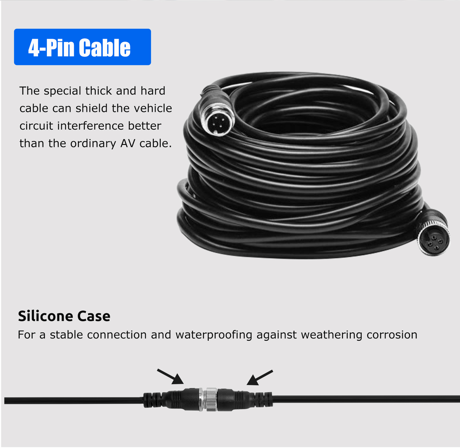 Wired Rear View Camera with Stable Transmission: The rear view camera comes with a 4-pin 32ft cable designed for the most cars, vans, RVs, trucks, trailers and even RVs. The wired transmission of the Rear camera is more stable and reliable, so no signal will be lost at the important moment. Protect vehicle safety around the clock.