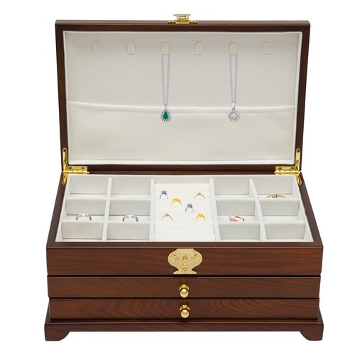 Large Capacity: This Large Size (12.4*7.6*5.7in) Jewelry Box Is Designed with Three Layers to Give You Plenty of Storage Space. with This Large-capacity Jewelry Organizer, Your Various Jewelry Will Have a Warm and Spacious Home.