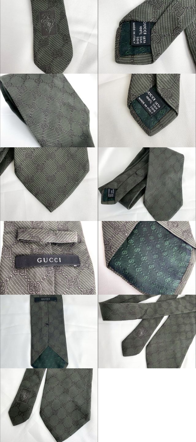 GUCCI GG Pattern Tie Dark Gray 100% Silk Authentic From Japan