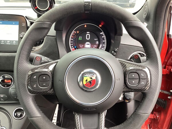 This 2022 Abarth 695 T-Jet presents an exceptional opportunity with its remarkably low mileage of just 20320 miles for its age, complemented by a full service history. This Euro 6 compliant 1.4L petrol engine model is equipped with a Uconnect 7in touchscreen radio featuring navigation, Bluetooth, USB, Aux in, audio streaming, and DAB, all delivered through six speakers. Comfort is assured with automatic climate control and the convenience of rear parking sensors. Seamlessly integrate your smartphone with Apple CarPlay and Android Auto, while the rain and dusk sensors automatically activate the headlights for enhanced visibility.Experience exhilarating performance with this Abarth 695, boasting an impressive 0-62mph acceleration time of just 6.9 seconds. This swift acceleration demonstrates its superior performance compared to other vehicles in its class. Furthermore, the inclusion of 12 months MOT upon purchase provides added peace of mind, ensuring the vehicle is roadworthy and ready for your enjoyment.