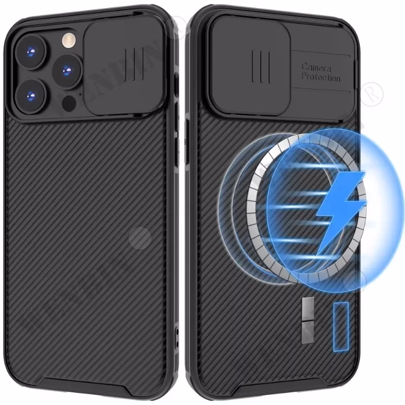 Experience unmatched protection and style with this sleek black magnetic case designed specifically for iPhone 11 through 16 series, including Plus, Pro, Max, and Pro Max variants. Its shockproof construction combines durable plastic with precise cut-outs for volume controls, silent switch, and power button, ensuring full accessibility. The reinforced edges offer enhanced impact resistance, shielding your device from drops and bumps. A textured diagonal line pattern on the back provides an anti-slip grip and stylish visual appeal, while a raised transparent lens cover safeguards the camera lenses without obstructing the view. Supporting MagSafe wireless charging, this case seamlessly combines elegance, durability, and functionality to meet your everyday needs and protect your device in style.Keys features of this black magnetic case