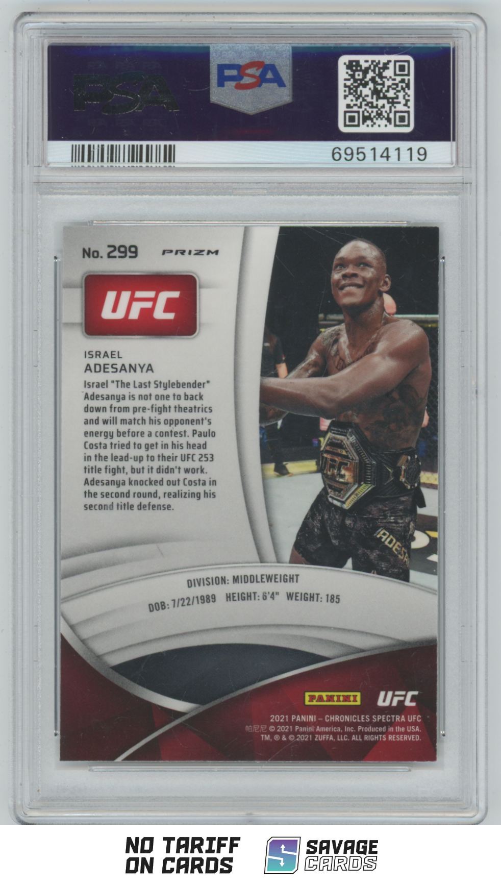 | 2021 Panini Chronicles UFC Asia Israel Adesanya PSA 10 #299 | ||||||||||||||||