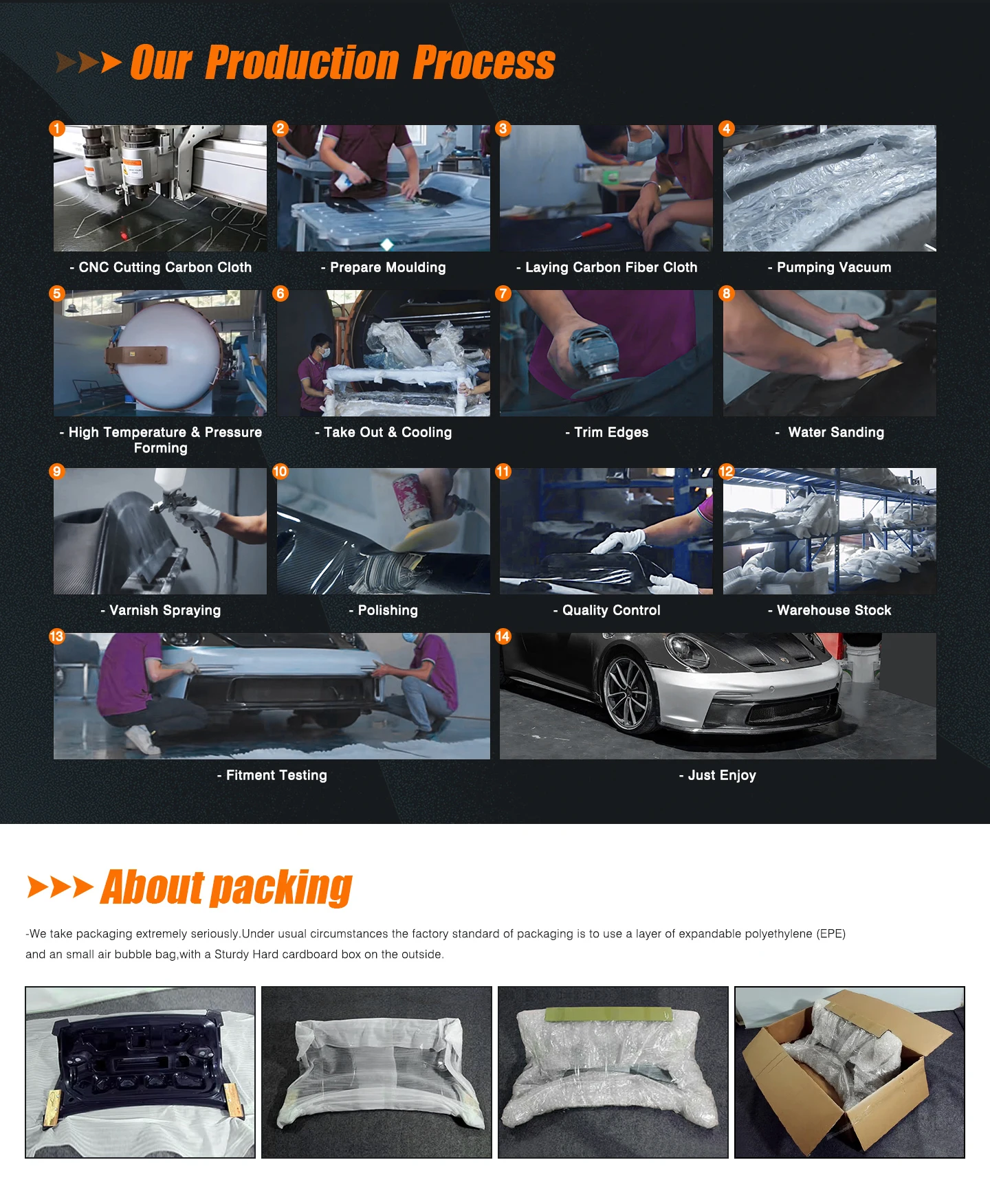 | All parts have been test fitted on cars before molding to ensure the fitment, we always recommend buyer install them by professional body shop have carbon or fiber glassexperience. |