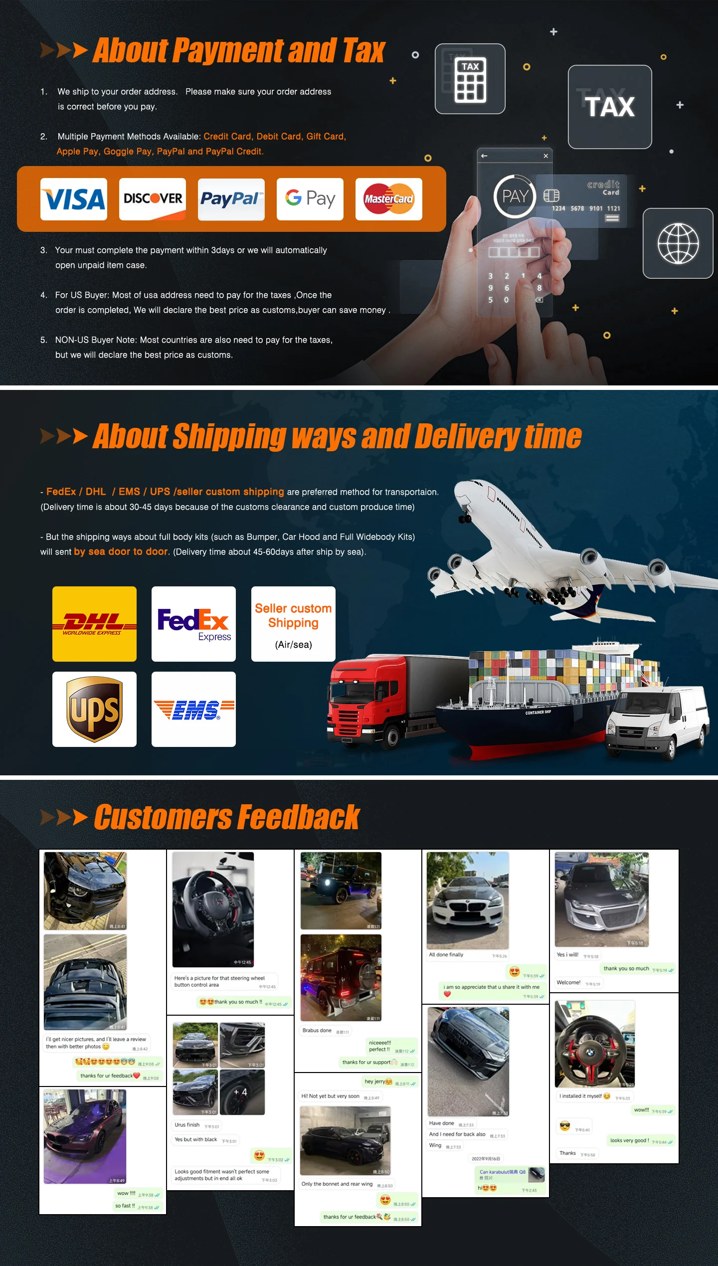| 4.For US Buyer: Most of usa address need to pay for the taxes ,Once the order is completed, ebay willautomatically collect the tariff. |