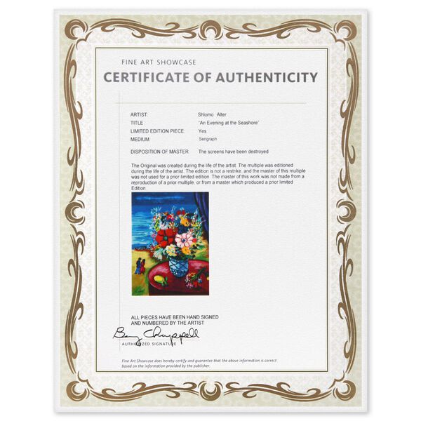 Artist: Shlmo Alter. Medium: Serigraph. Title: An Evening at the Seashore. Size: 10" x 13". Signature: Hand signed and numbered. Reference#: 74785.