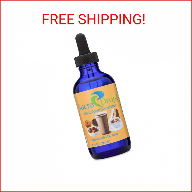 SucraDrops 4 oz Bottle of Premium Liquid Sucralose Sweetener, 1,180 Servings x 2 drops per serving size, totaling 2,360 drops