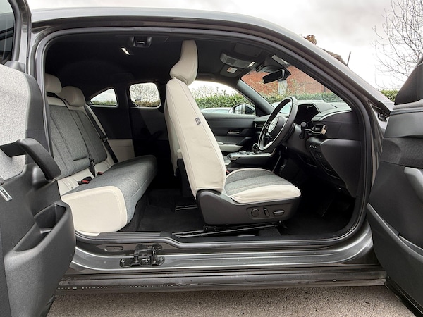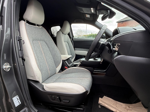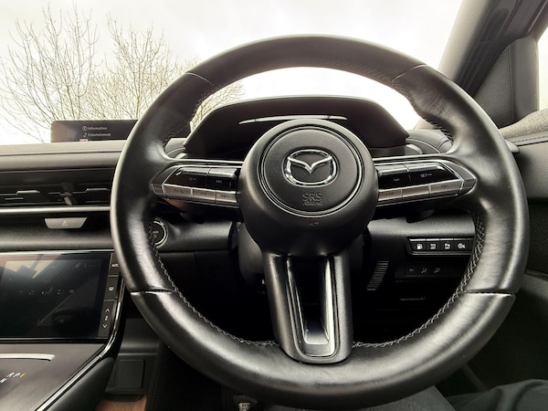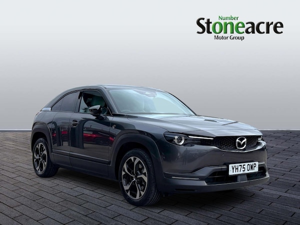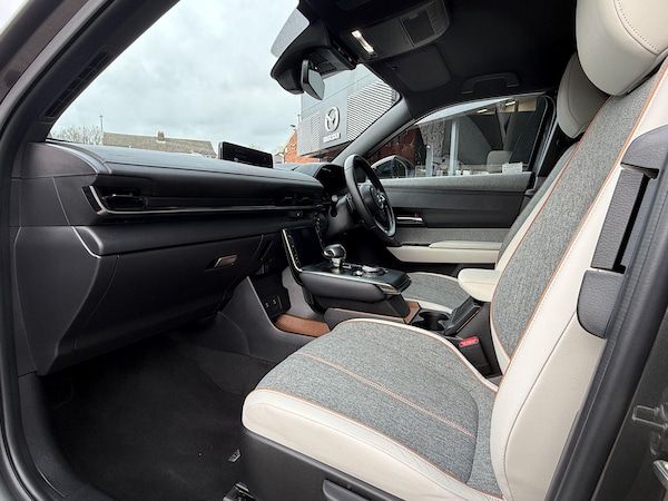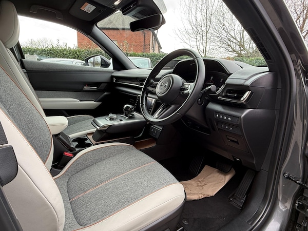 This 2025 Mazda MX-30 Exclusive-Line presents an exceptional ownership proposition with remarkably low mileage for its age, having covered just 2989 miles. This petrol plug-in hybrid model has been cherished by only one owner, ensuring its excellent condition. It comes equipped with essential features for comfort and safety, including climate control air conditioning, dusk sensing automatic headlights, and integrated Bluetooth for seamless connectivity.The safety suite is further enhanced by emergency lane keeping with blind spot assist, alongside blind spot monitoring, providing an extra layer of awareness on the road. These advanced driver aids, combined with the efficient petrol plug-in hybrid powertrain and the car's single owner history and minimal mileage, clearly set this Mazda MX-30 apart from others you might find.