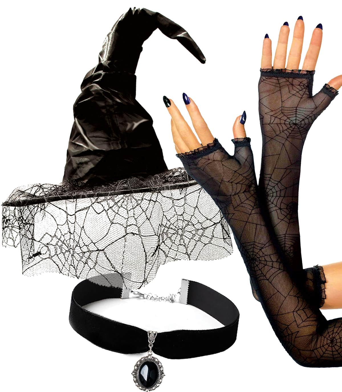 Witch Hats - Great Costume 3PC Which Hat with Spider Gloves and Witch Necklace