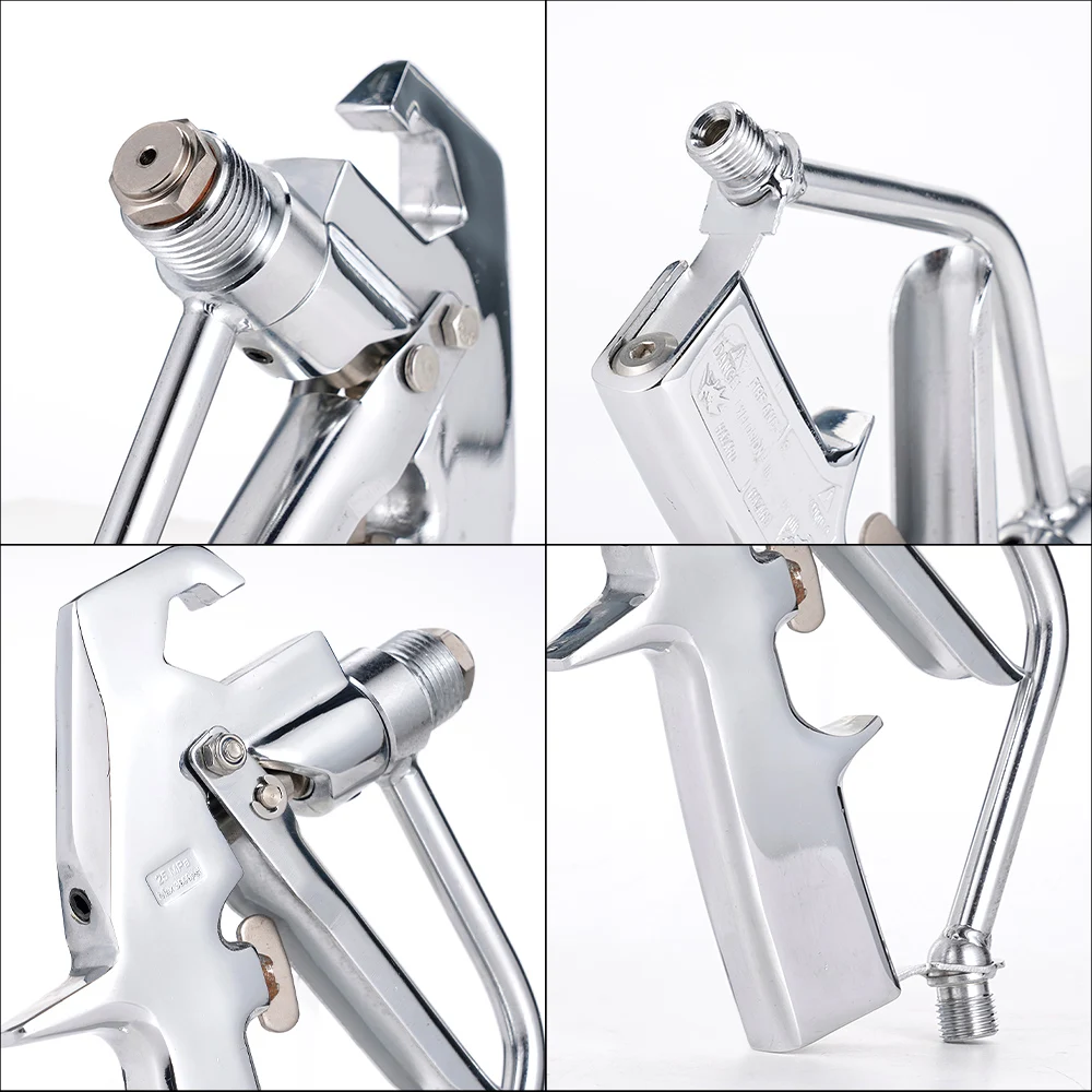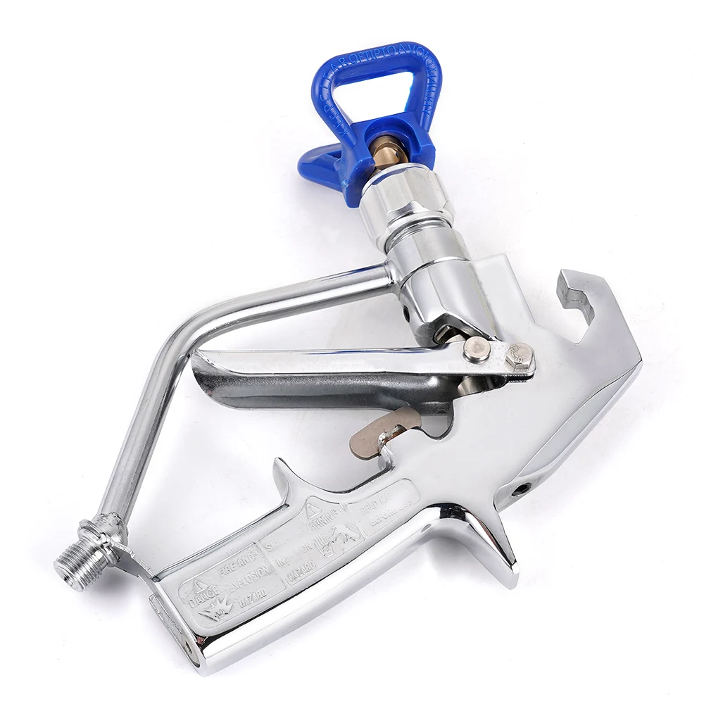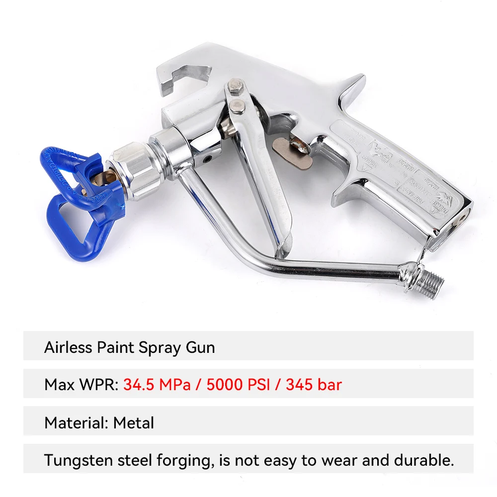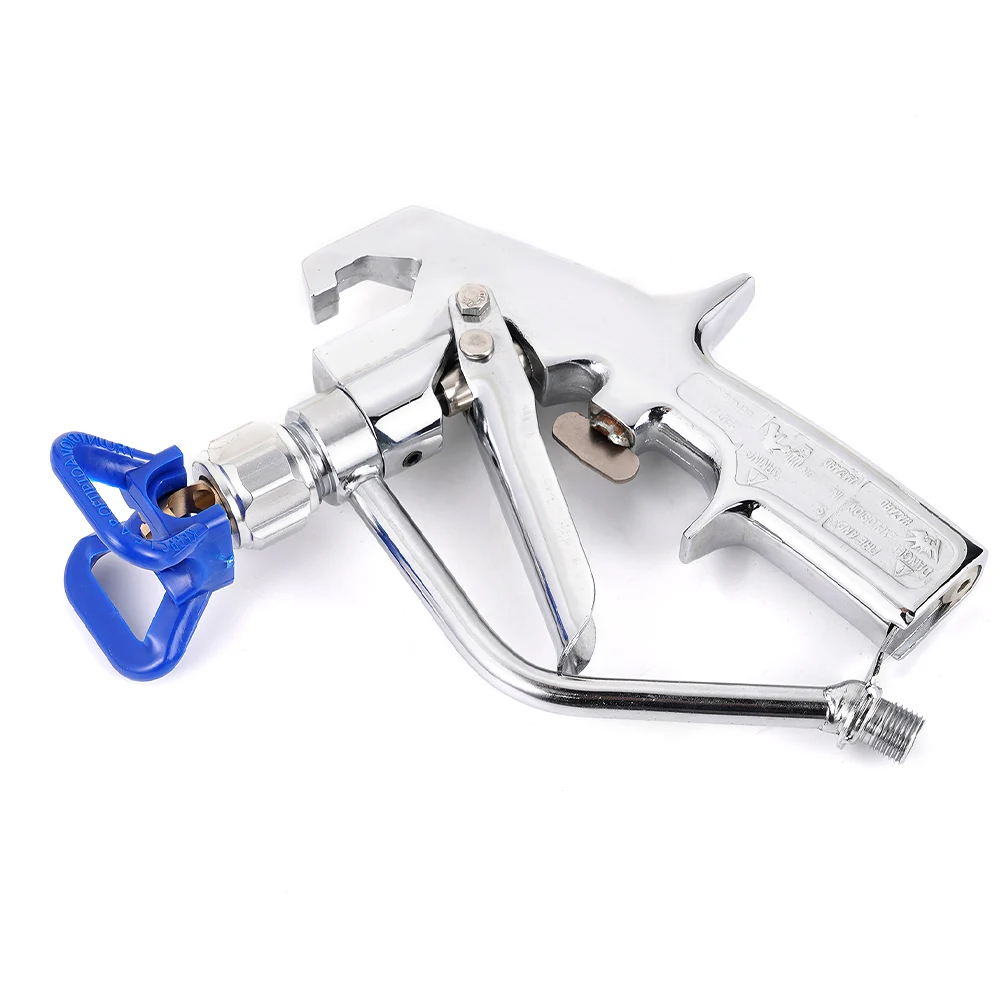 Airless Paint Spray Gun Sprayer Color:Blue Material: Metal Total length: 200 mm Total width: 180 mm Max WPR: 5000 PSI/345 bar Airless Spray Tip Color:Black Model:517 Maximum pressure 34.5 MPa 5000 PSl 345 Bar Size(L*H):4.3 x 4.5 cm Tungsten steel forging, is not easy to wear and durable. Steps to use: 1.First of all, the paint was removed to check whether there is a rupture damage, found that should be replaced immediately. 2.That will have the air pressure of the trachea access to the end of the handle end of the air inlet connection, you must check into the air outlet and each part of the connection whether have a leak, there is leakage phenomenon should be even maintenance. 3.According to the requirements of the quality of the paint required to adjust the application of the paint g u n How to maintain: 1.Every time the use of tools from the tool air inlet filling 3 to 4 drops of special gas oil to reduce wear and prolong the service life of the tool. 2.To ensure that the supply of gas source tool dry, no impurities 3.Regular cleaning, gas maintenance, timely replacement of worn parts Package Included: 1 x Paint Spray Gun(With Base)