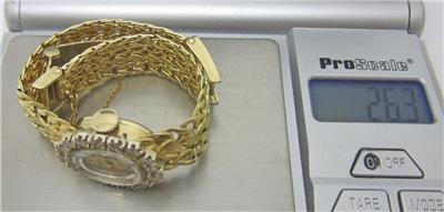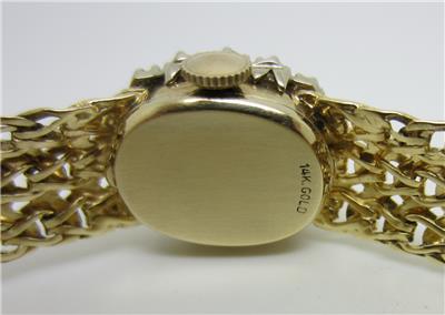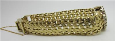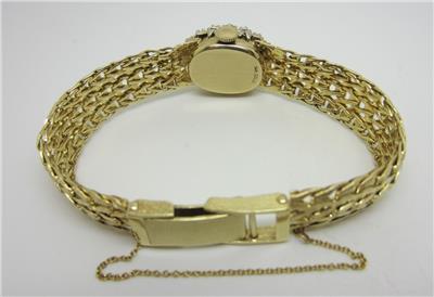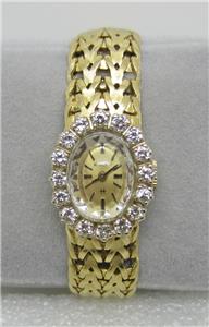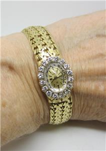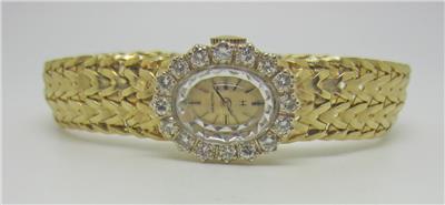This beautiful watch is solid yellow gold stamped 14K Italy. The watch is a Hamilton vintage diamond watch that has 16 genuine natural diamonds that total approximately 1.00 carat, VS1-VS2 in clarity, G-H in color. The watch has a hand winding mechanism that is working good and keeps accurate time. The watch has been appraised by a GIA Certified Master Graduate Gemologist and the full report will be included with the watch. The replacement value of this watch is $9,274.03. The watch is 6.5" in length, and the band is 17.5mm in width with a folding clasp and safety chain.