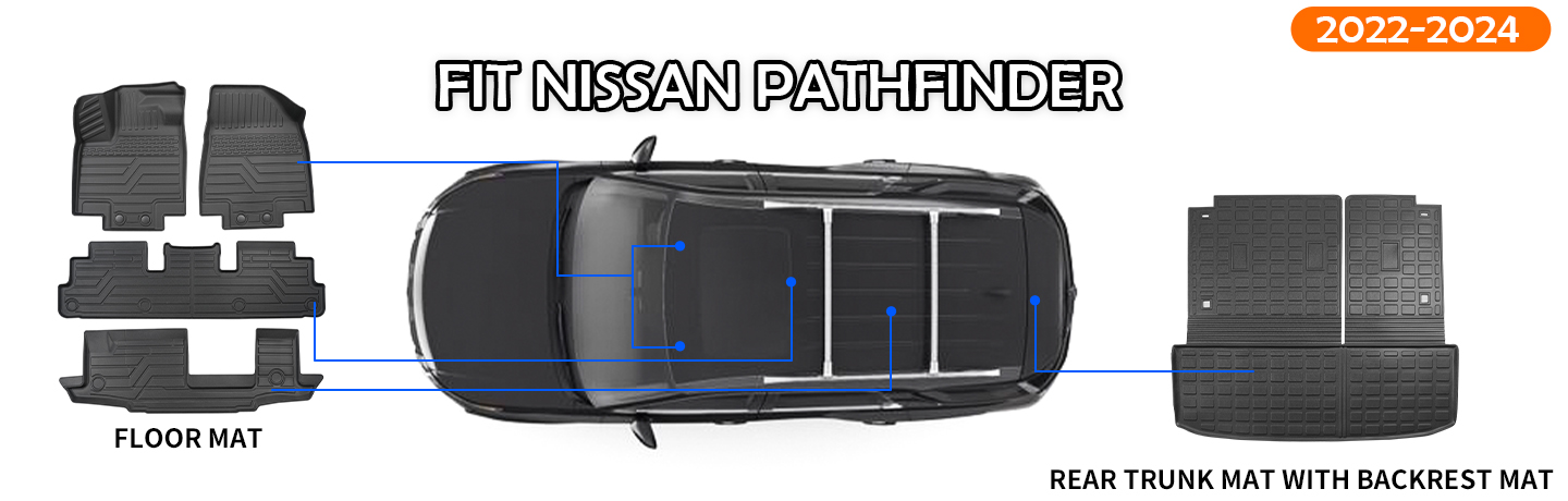 1.Exclusive Fitment:Our floor mats and trunk mat with backrest mats are compatible with 2022 2023 2024 2025 2026 Nissan Pathfinder 7&8 seats.Attention:if your car is an 8-seat model, the floor mats are perfectly suitable. If your car is a 7-seat model,the 3rd floor mats need to be cut by yourself.Please confirm the model year before purchasing.