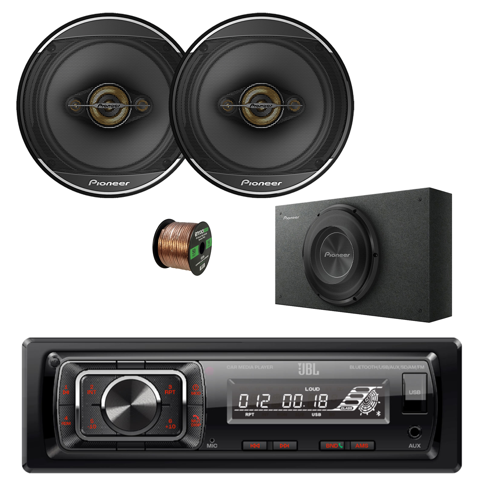 JBL Celebrity150 Single DIN Bluetooth FM Radio USB/AUX Media Receiver, 2x 6.5" 350 Watt 4-Way Car Audio Speakers, 10" 1200W Subwoofer w/Wire