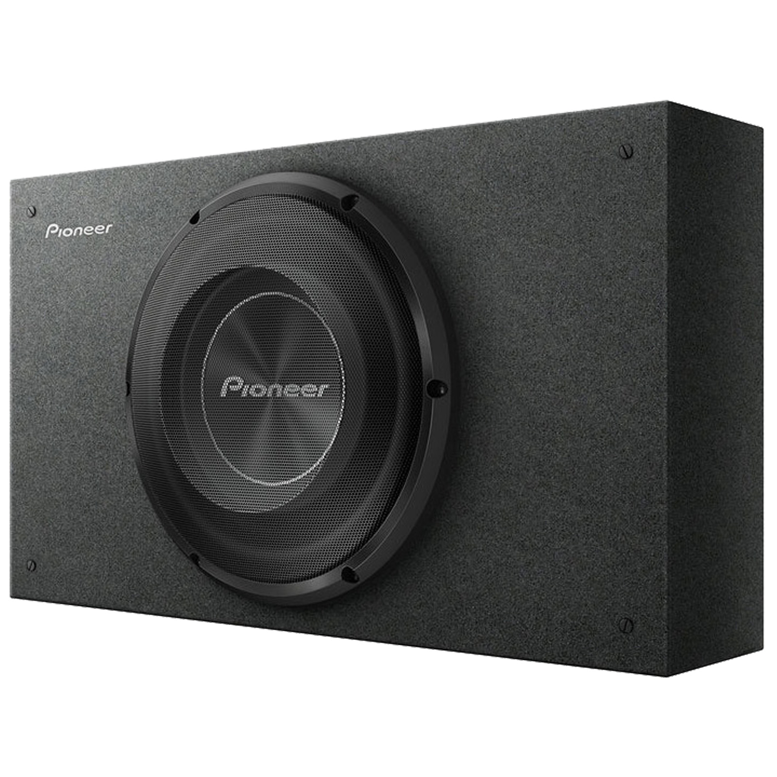 • SUBWOOFER ENCLOSURE: Pioneer 10" Shallow-Mount Pre-Loaded Subwoofer Enclosure provides a maximum power of 1200 W with continuous 300 W RMS. Features a glass fiber and mica interlaced, injection-molded polypropylene IMPP cone with a 2 Ohm single voice coil. Its unique design allows it to be mounted upright, lying flat facing upwards, or configured in a down-firing position with a steel mesh grille.