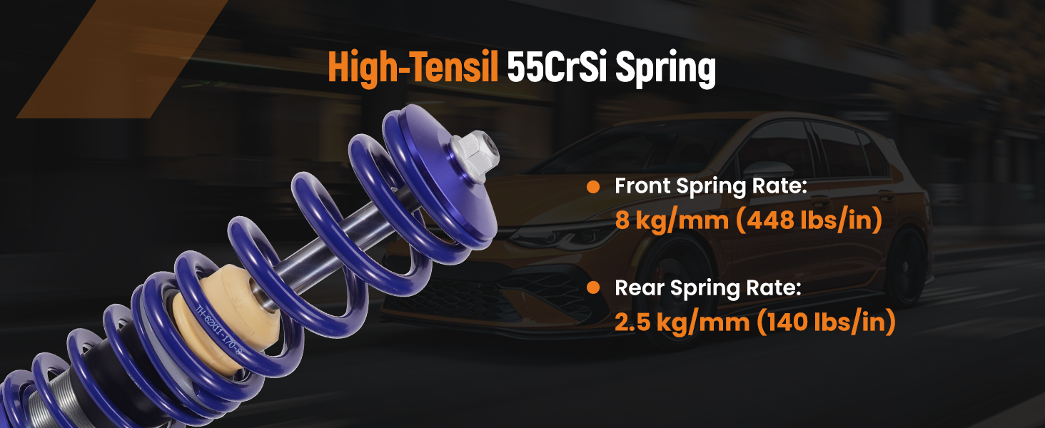 - Spring rate Front: 6 kg/mm (356 lbs/in)