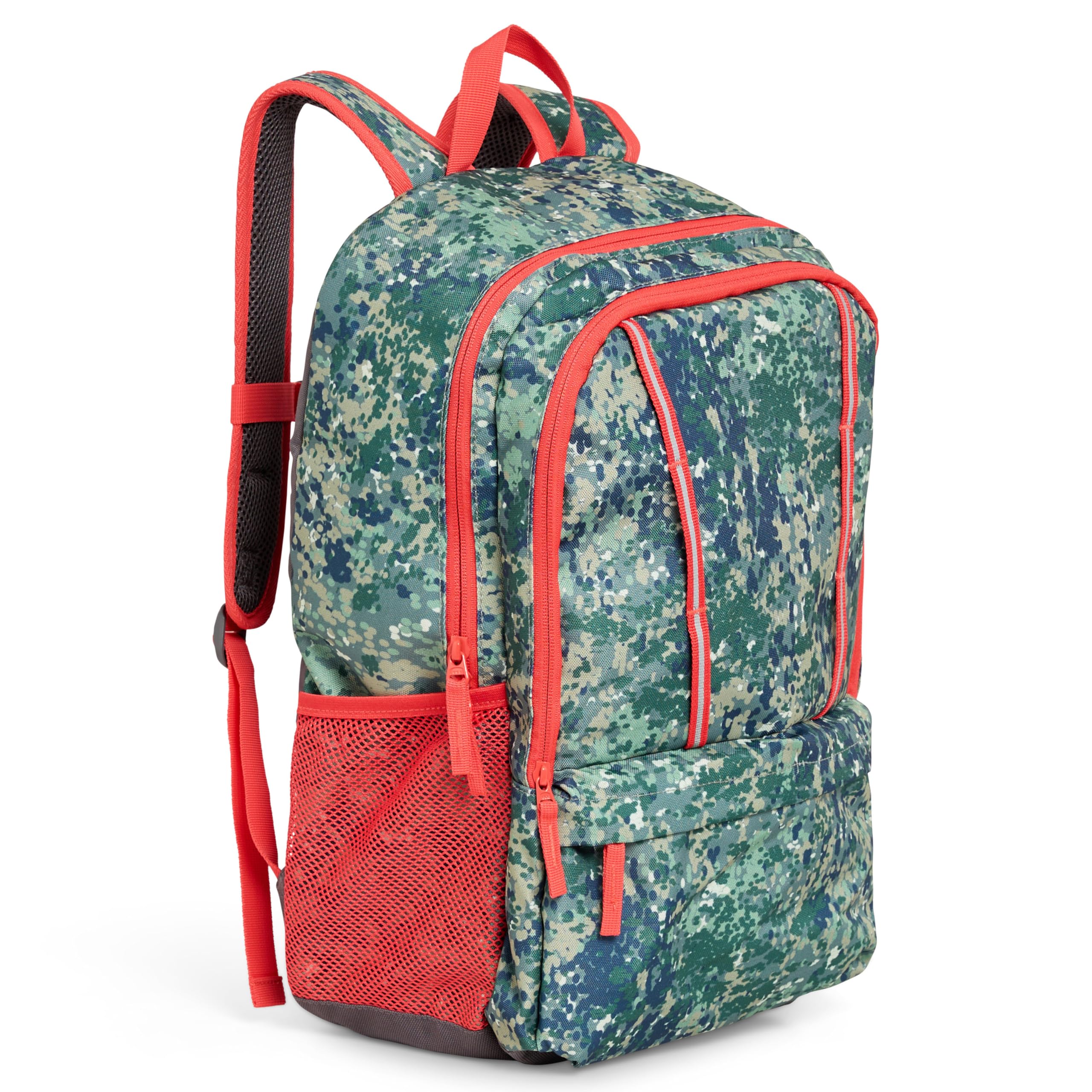 - FUNCTIONAL EXTERIOR & COMFORTABLE FIT: For a secure and comfortable fit, the backpack has adjustable shoulder straps with PE foam padding and an adjustable chest strap with buckle closure. A reinforced top handle doubles as a convenient hand grip and wall hanger. High-quality zippers provide easy access to the two-way zippered main compartment, a secondary compartment, and a front pocket, while two mesh side pockets are perfect for water bottles.